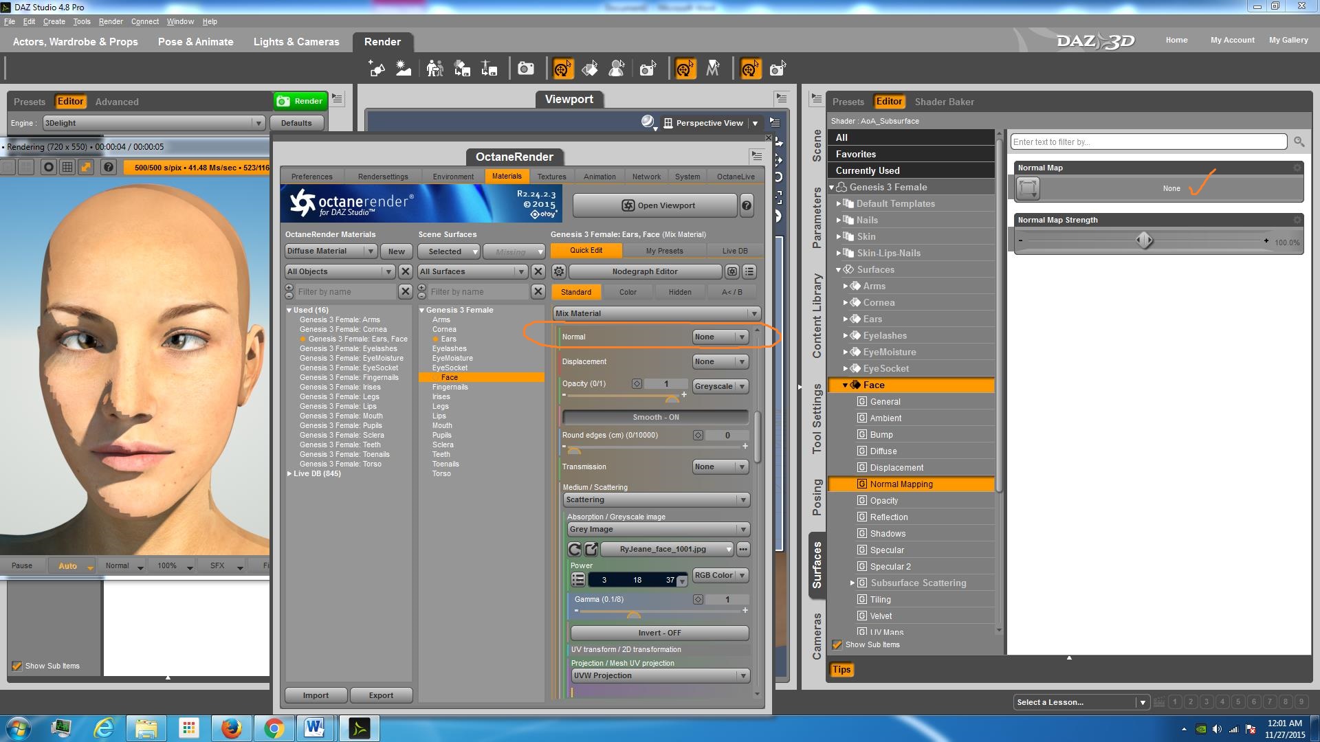 DAZ - G3F Face Normal Mapping in Surfaces Pane