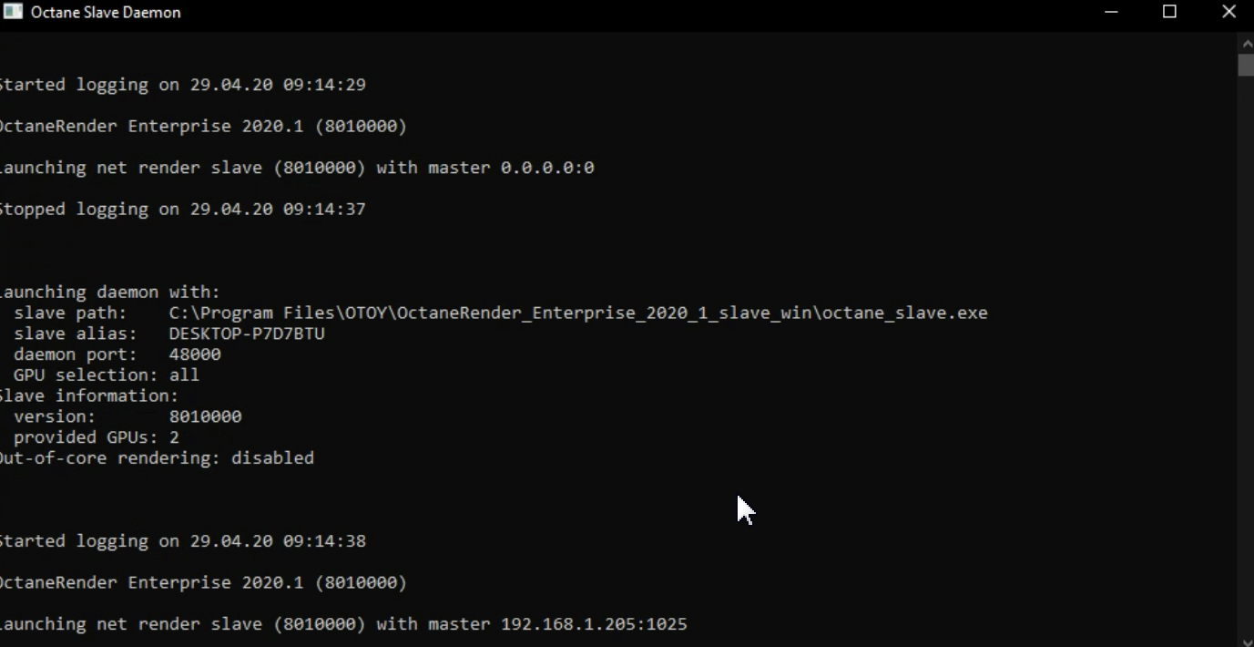 Yes, you misunderstood me. Before starting Cinema, befot master-slave story.mojave wrote:Trying to download your video but seems that might take a while, could you describe what the problem is and how you got to reproduce it? Also note this version has been deprecated by a the 2020.1 release.divasoft wrote:Hi guys, i need help. I found that I could not start the slave node anymore. 2019, 2020 releases - do not run on three different computers. What could be the problem? I run the daemon and nothing just happens.