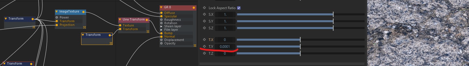 Hard bug with Transform node connected to bump channel in UV Projection.