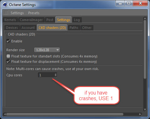 Are you using c4d's shaders in Octane materials with multicores?