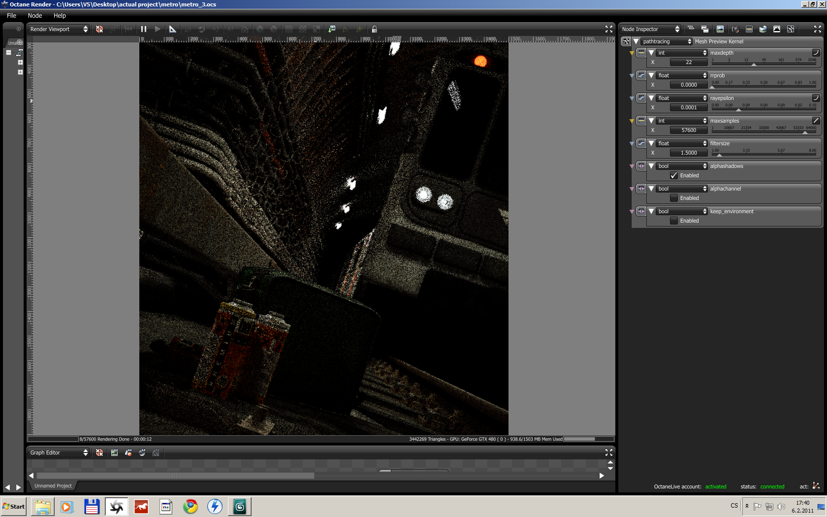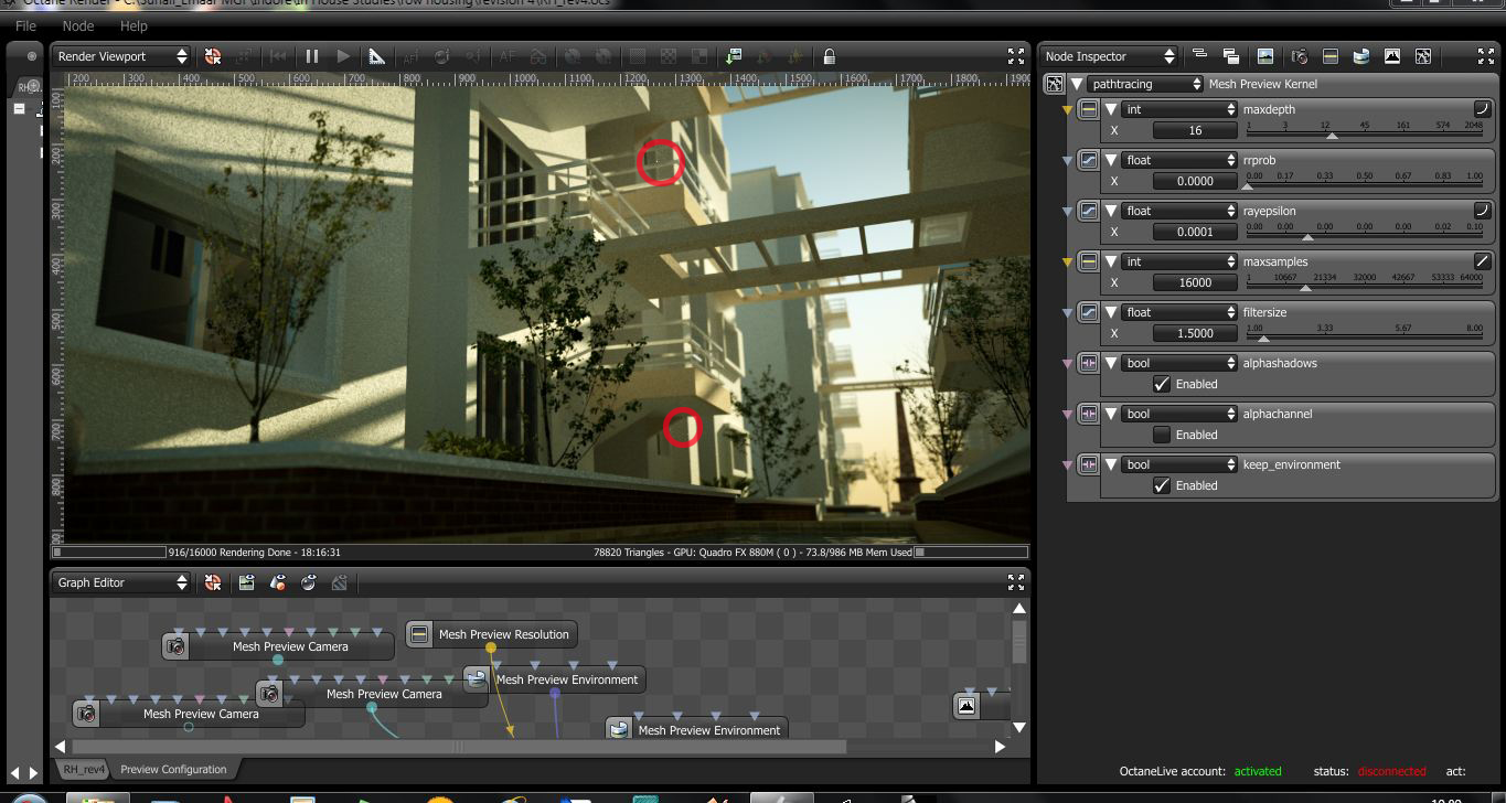 technicals: scene has 78820 triangles, and daylight as light source.. vegetation is opacity mapped..flower pots and obelisk taken from 3dwarehouse (free models)...a little postproduction was required to remove a few fireflies (highlighted in the attached octane window)