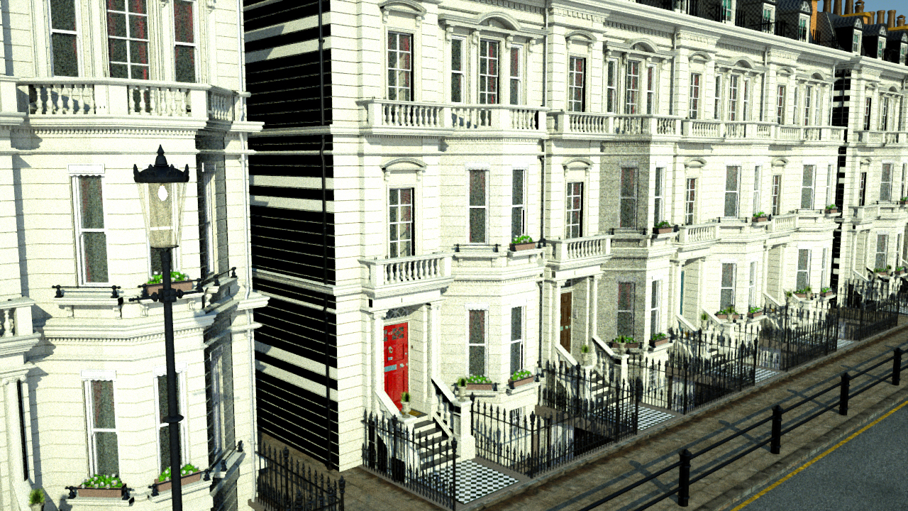 There is a problem with planes that are exactly axis-aligned which is hard to solve without a major speed drop and increase in memory usage. The artifacts on the grass may show up because the rayepsilon value is set too low. Do these artifacts also show up in RC 2?ROUBAL wrote:On my current London street scene, requiring a very large scene (currently more than 600 meters of length, the buildings far away from the center (more than 200 meters) show black artifacts, weird shadows, black strips (horizontal and vertical black strips, visible on the sides of the buildings, between two buildings)... and the ground green surface shows from high altitude weird patches like overlaping faces, but there are no overlapping faces.