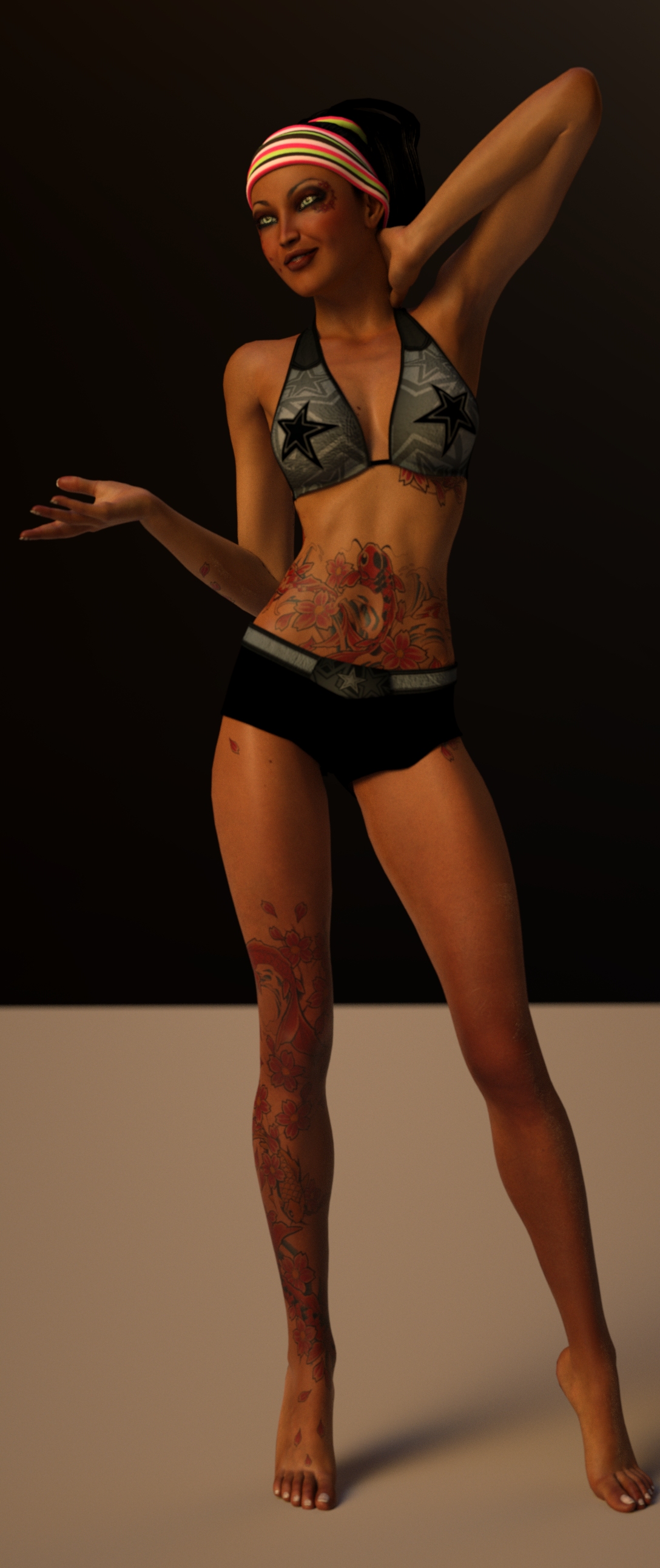 This is using that specular skin shader with a full character. you will notice she line on the thighs where the textures are not aligned