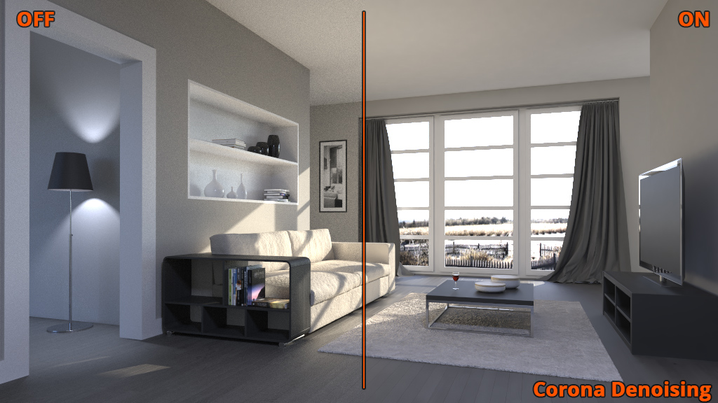 They will have an integrated denoising system in the next update which will probably be released in about one month. Images from corona-renderer.com