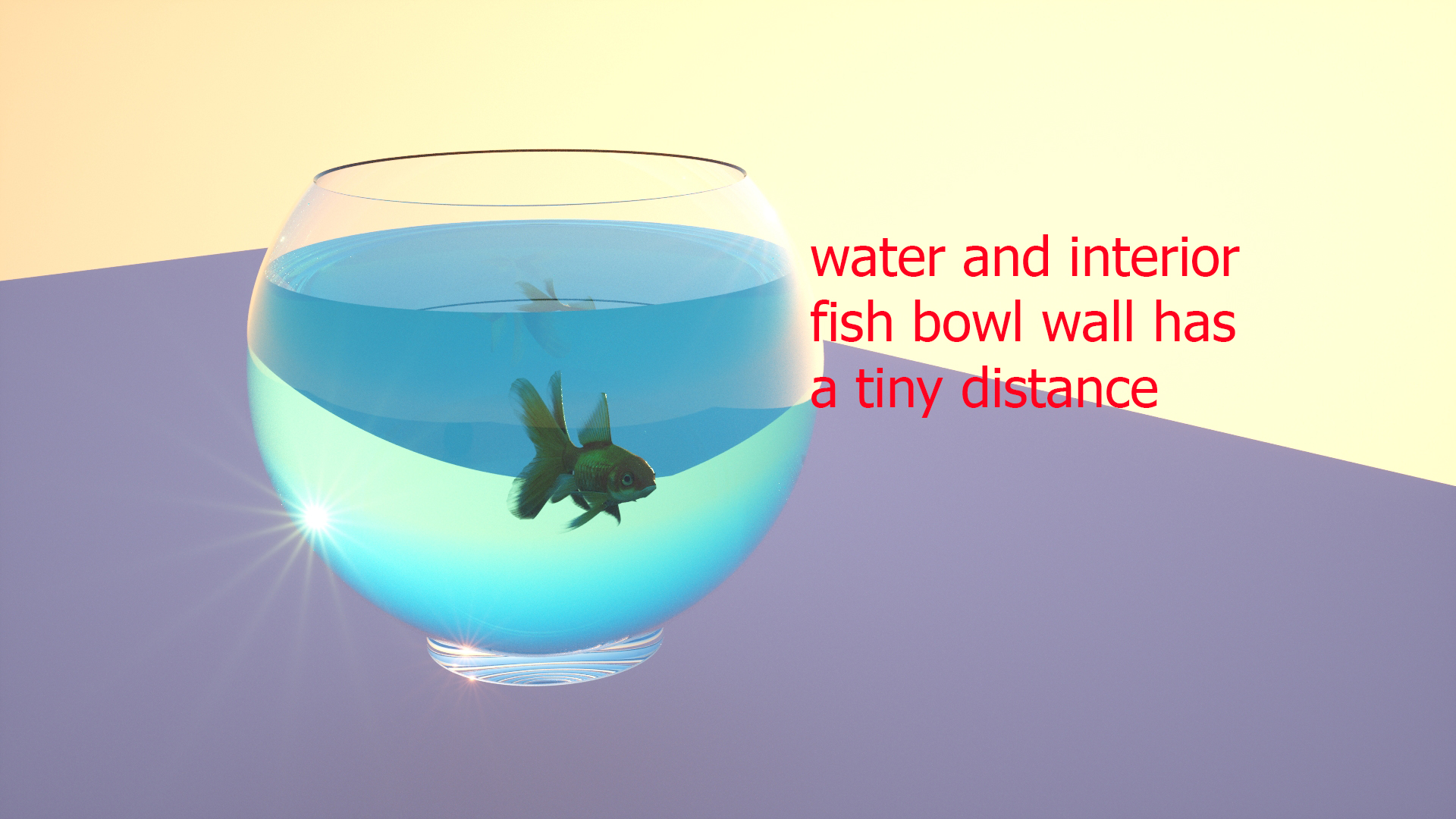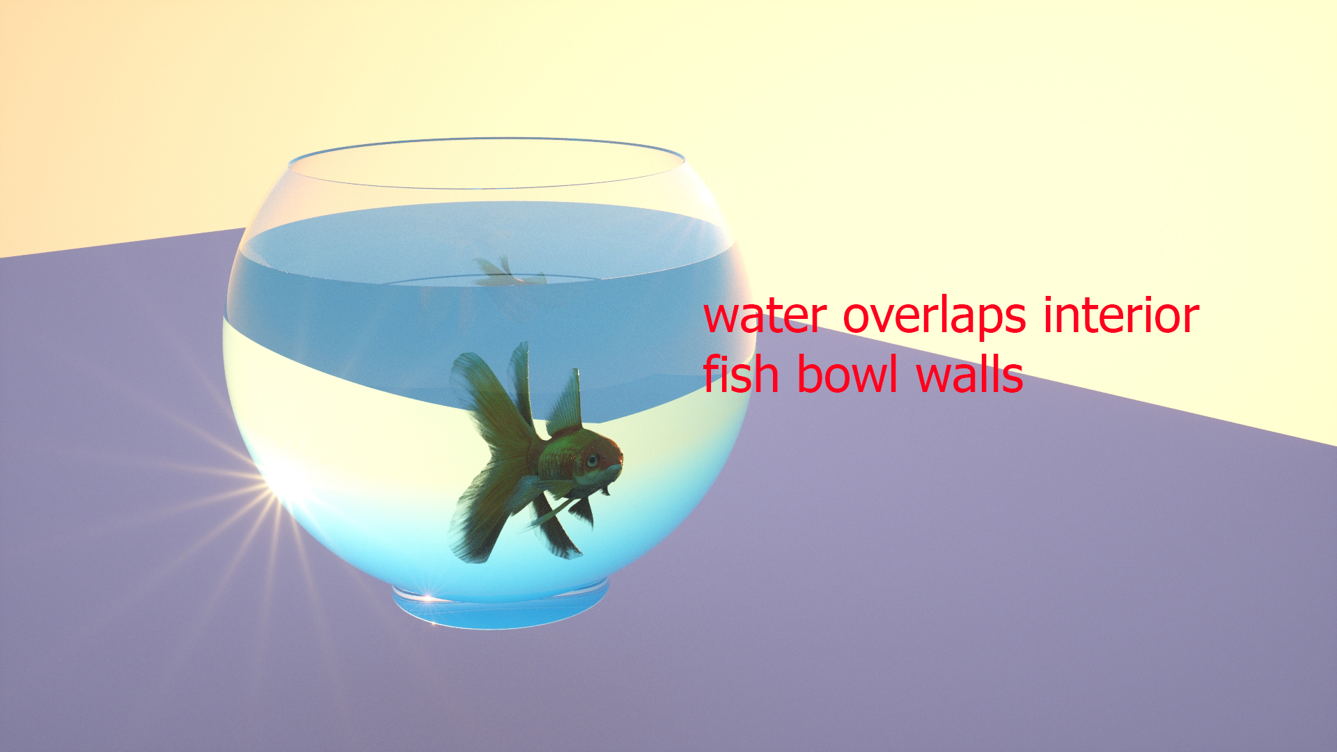 also i red that water must overlap glass a bit but this makes fish very distorted. When water does not touch water tank walls fish look better What is a proper way for water and glass container ? Thanks