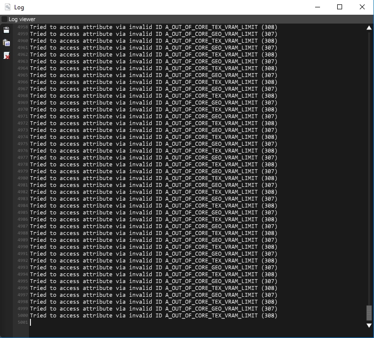 Tried to access attribute via invalid ID A_OUT_OF_CORE_TEX_VRAM_LIMIT