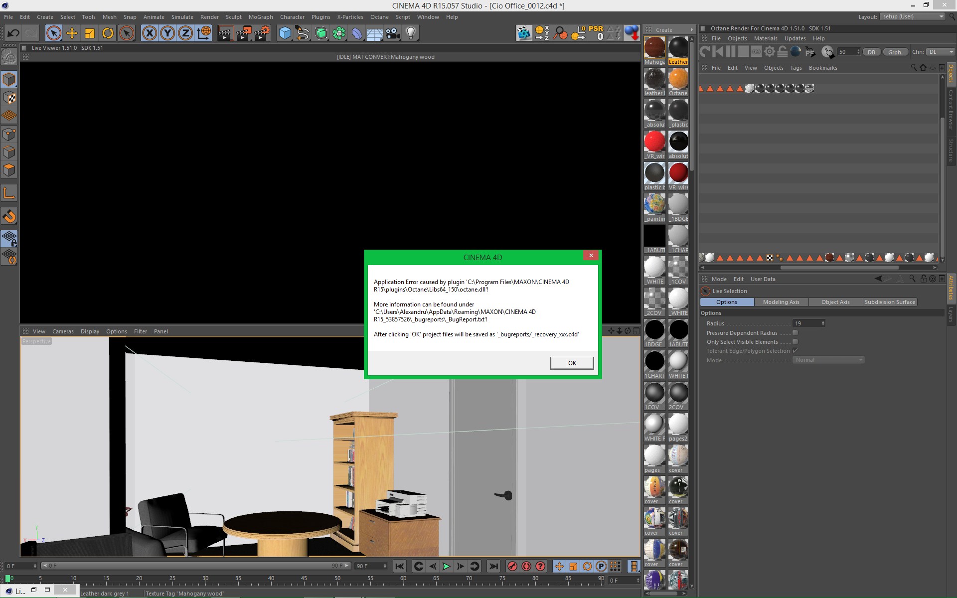pavel wrote:It crashed again while i was applying an octane material. Am i doing anything wrong? Should i replace a dll file or something?