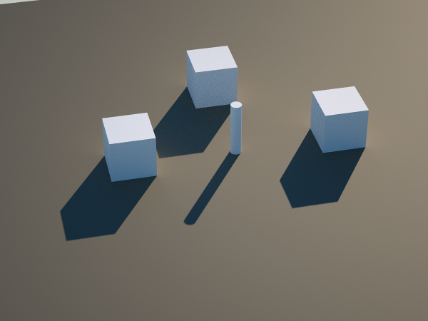The test scene contains the ground, 1 Poser primitive cylinder and 3 boxes. There is one light, infinite, named "Daylight".