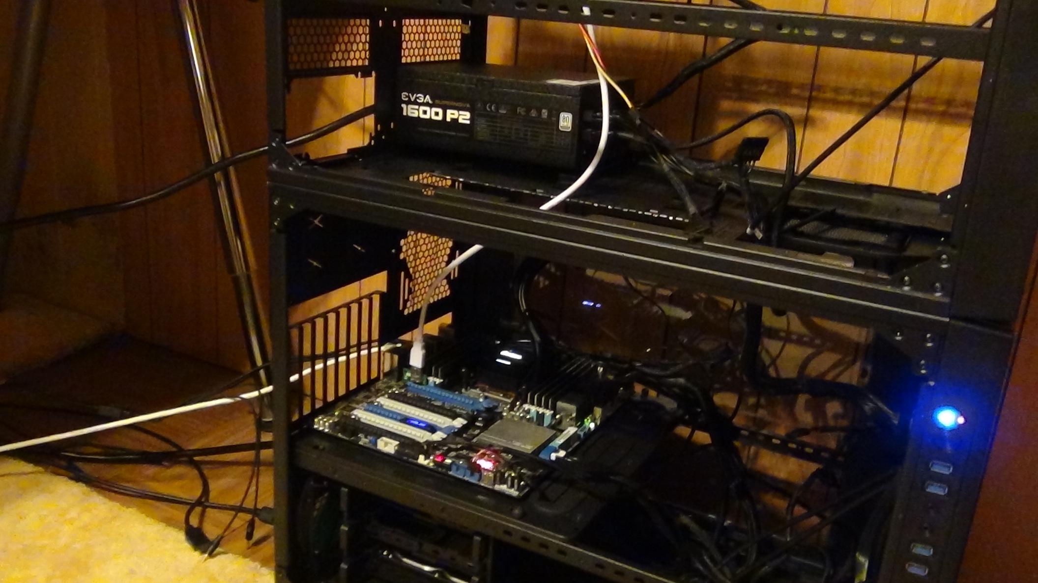 (1) I tried turning on the external Z's after the BIOS had already loaded, and while they did power on, the fans on the cards, and on the external PSUs went to max, so I shut off right away because it just sounded wrong for them to be doing that;