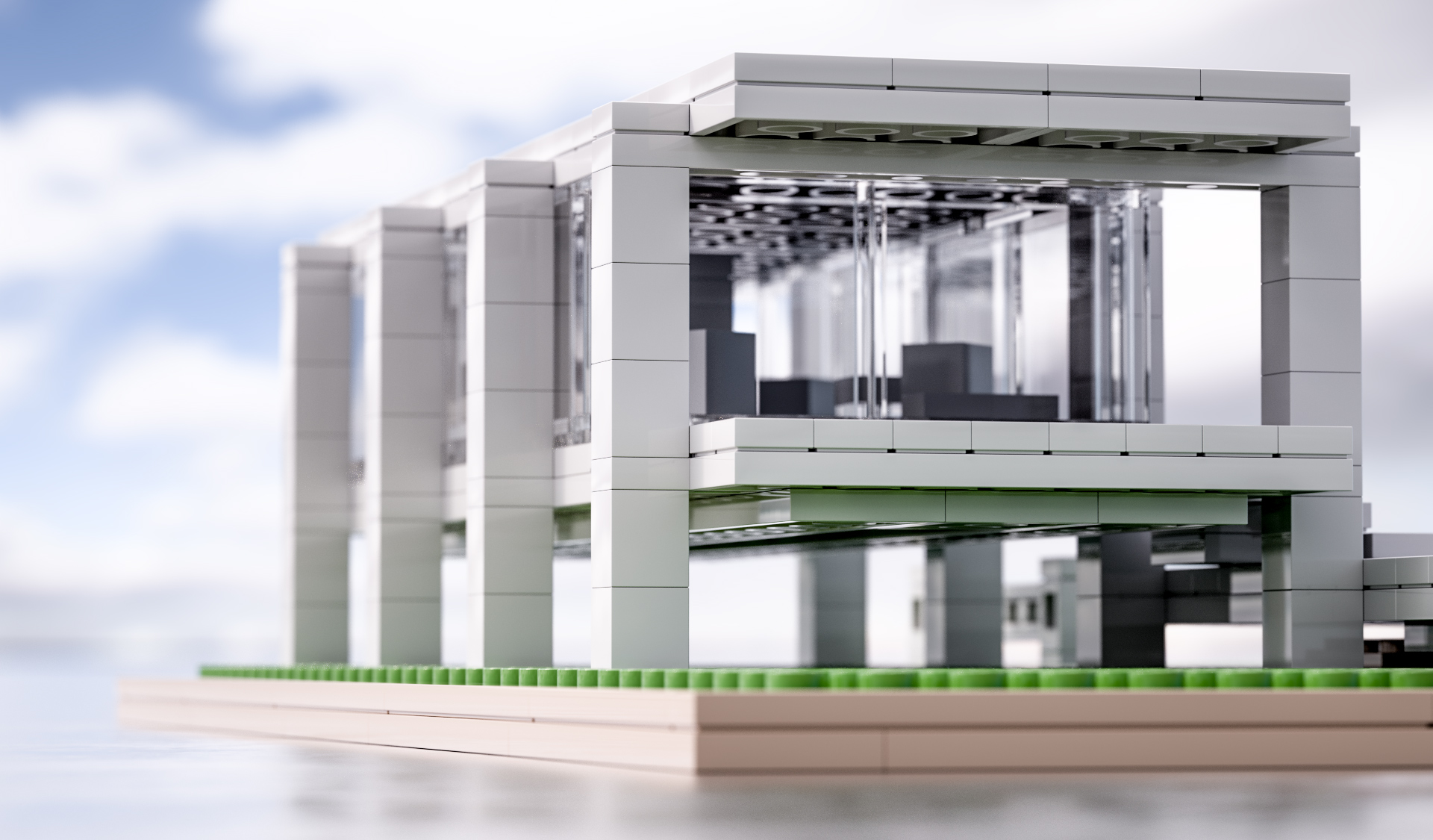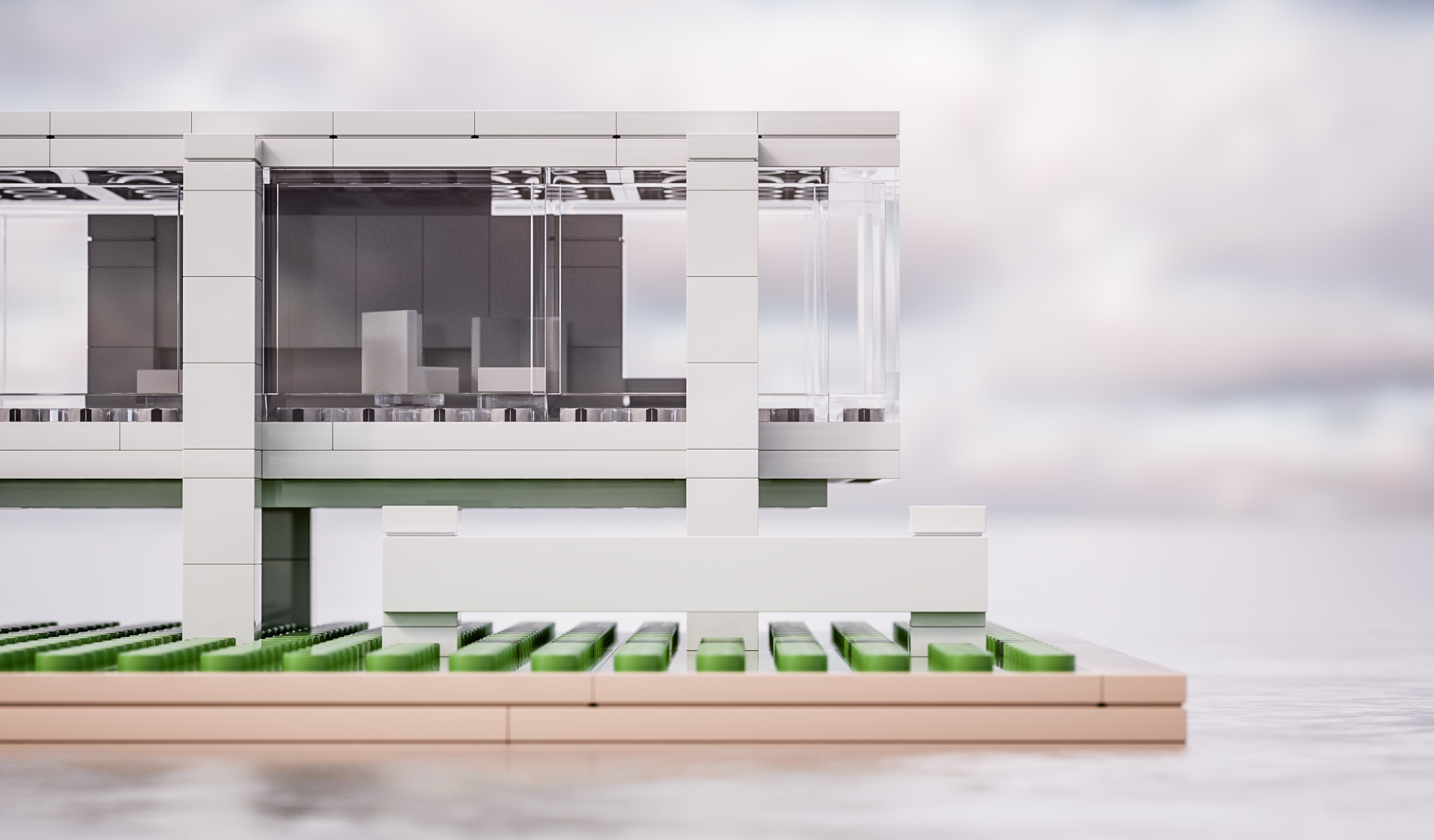 So, here's the first one. The first shot of this scene, as a horizontal frame, uses Peter's HDRI 1120. This is a Nature Museum and Observatory. The majority of this building is a museum and learning center, which is why there's only windows on the ends, in case anyone is wondering. The PT kernel was used in Octane. Phantom Scatter was used for the vegetation.