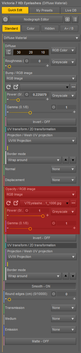 4.) The Opacity map for the Eyelashes converts as an RGB image
