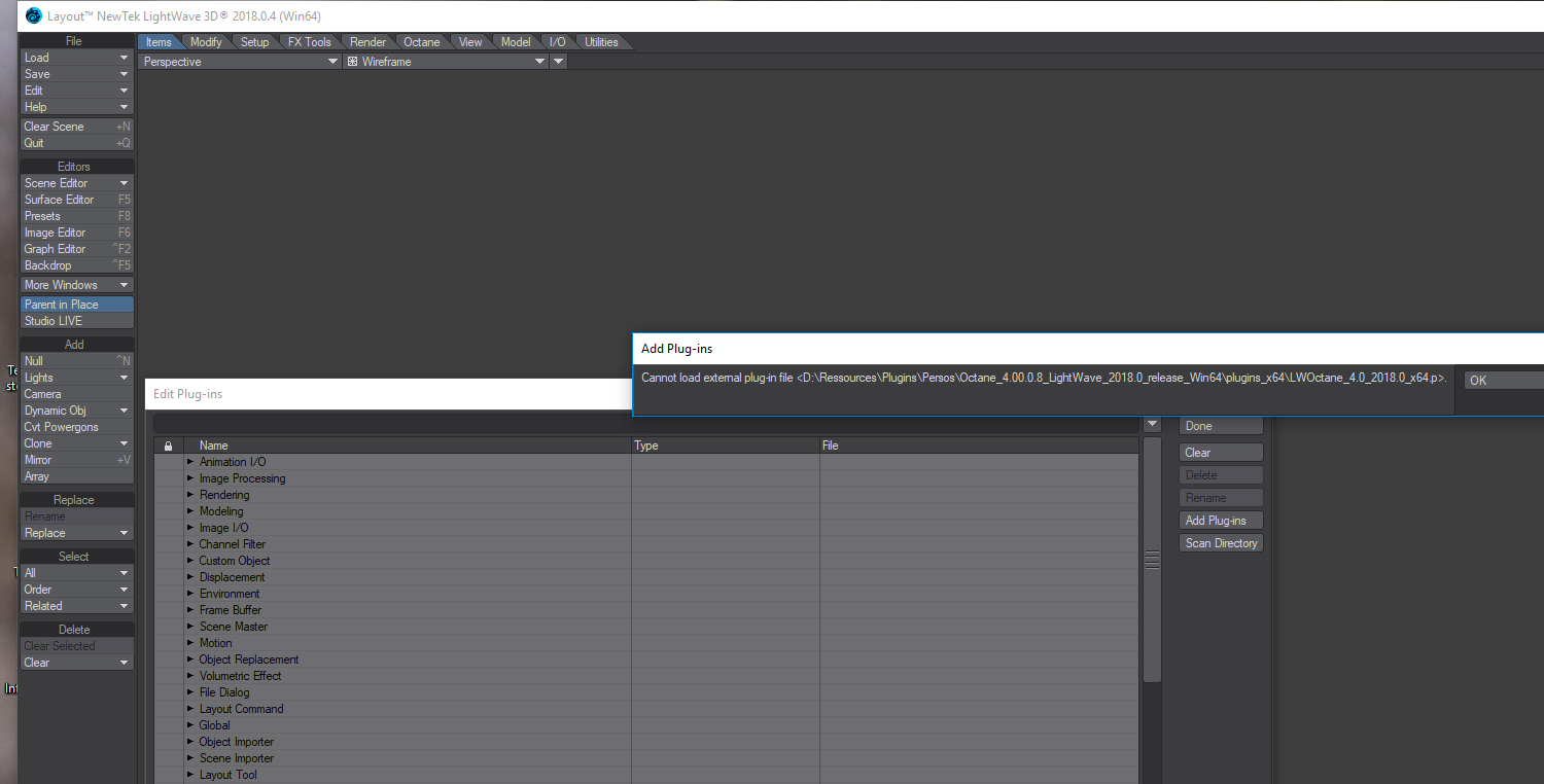 I cannot install the lightwave plugin too, I use the 2018.0.4 version too.