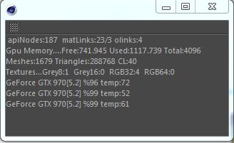 this is how the device panel and the gpu info panel look while trying to render a scene: