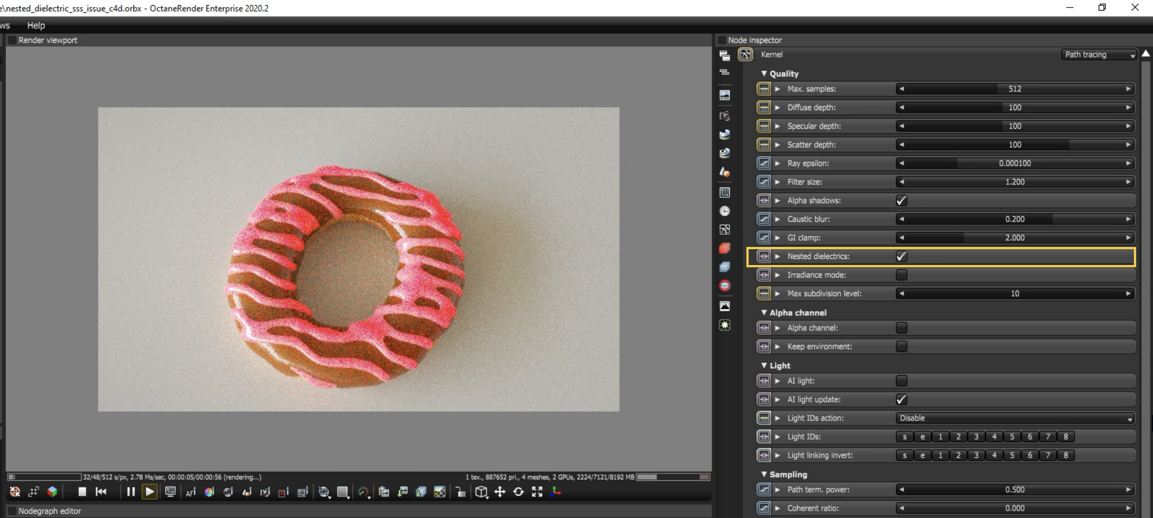 But in your scene, there is not a Specular inside another Specular, but a Specular on top of another Specular, so the Nested Dielectic option should not be used, isen’t it?