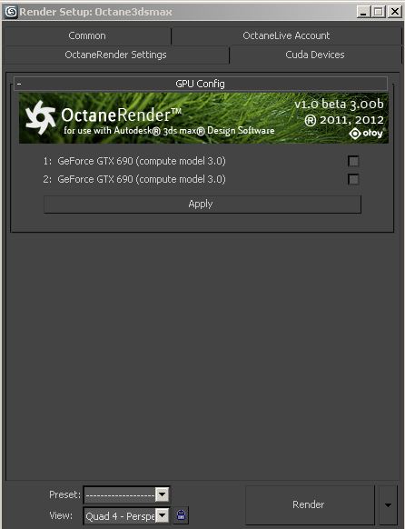 Do you see your GPU in gpu config of the plugin?AlexCom wrote:I`m using Version 306.97 (Graphics driver) and I went to Help - > System Information -> Components and my NVCUDA.DLL is 5.0.1 driver...