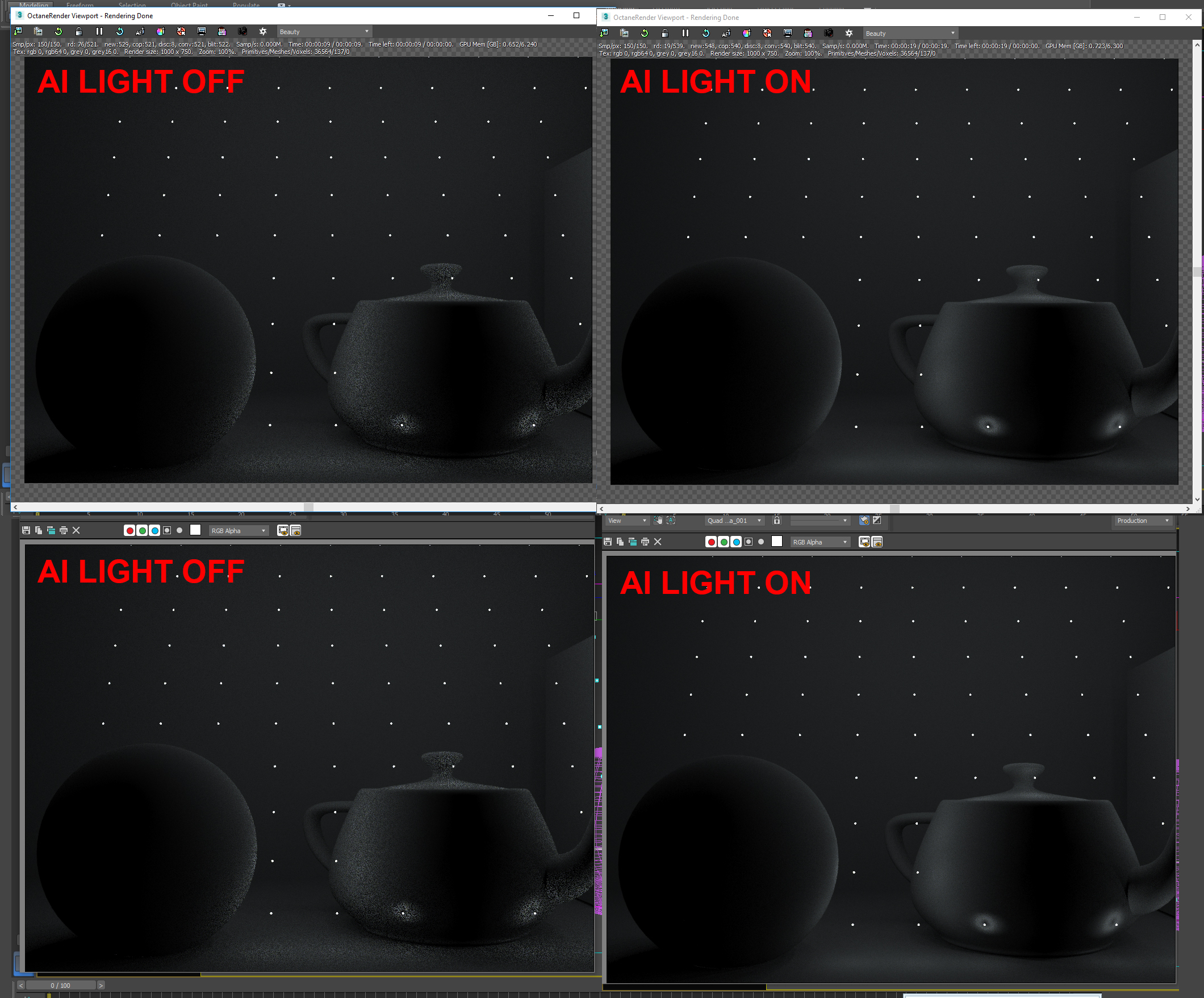 there is more to the problem. During regular rendering when AI is ON you can see lights are a little bit brighter compared to when ai is OFF (so there is a difference) However Octane viewport has even brighter and better looking lights. I attached three images. Not sure what is going on.