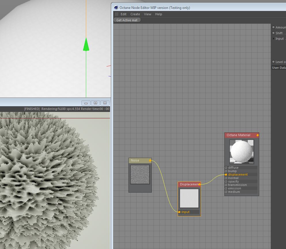 Next one is, if you follow the example above and disconnect the noise from the diffusion and hit "Get Active mat", noise node gets deleted, although it is connected to the displacement node.