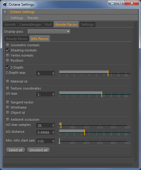 I think we have not shadow pass. And Octane has not this concept. I have talked about this with Thomas to add. But i'm not sure what's the shadow on Octane. Do you have a idea? Currently we have passes are in pictures. But object pass still not as you wish. All info passes are ignoring dof and mblur. I think this should be fixed. Isn't?KeeWe wrote:Most wantedt would be shadow but as i said, we can tweak it. Specular is left out til now but if it would be supported we would certainly use it.