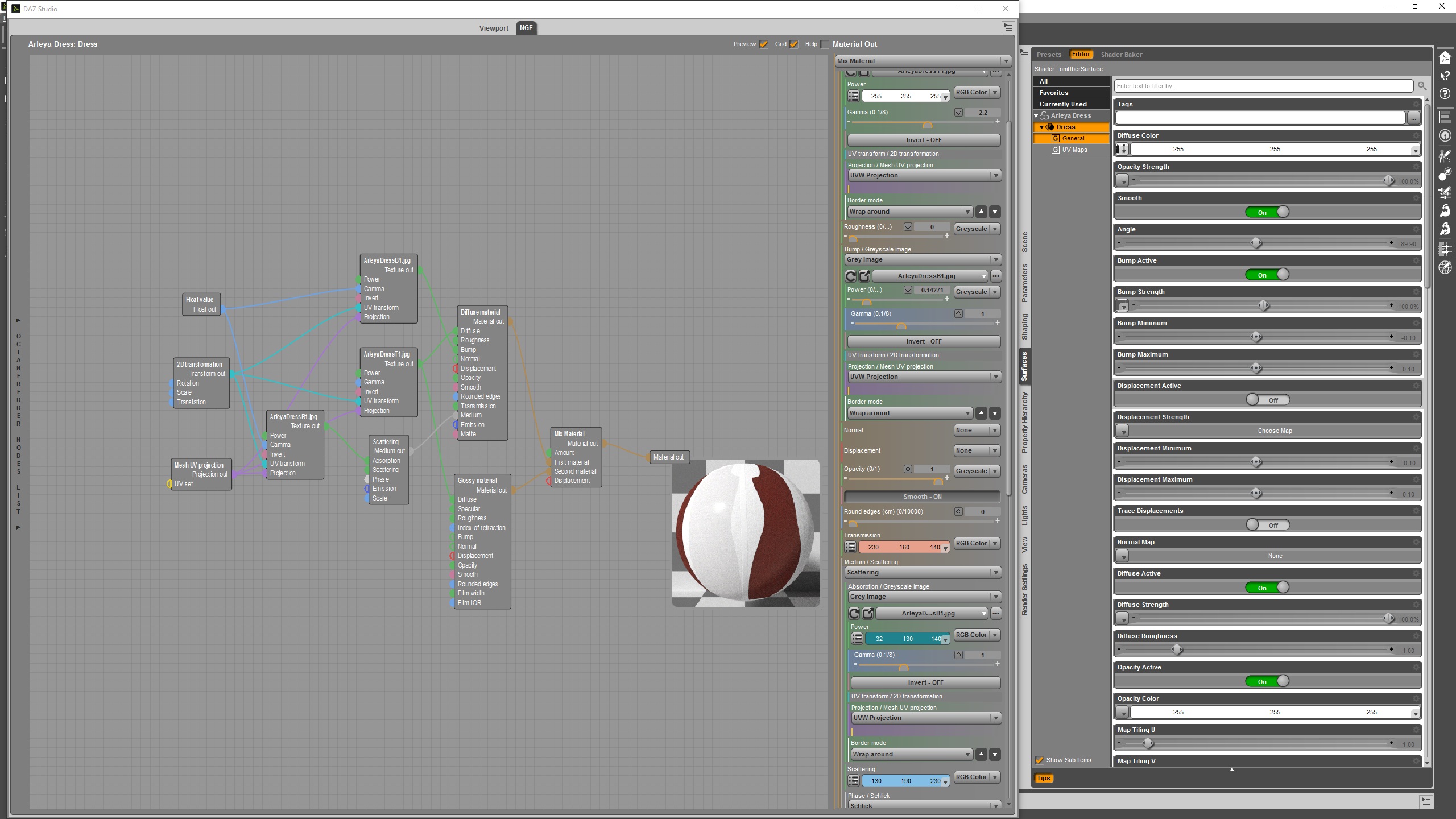 Another issue with the material conversion. The dress is a Black and White dress and in DAZ Viewport it showed correctly. But in OR Viewport, the black part has a Brown color. I saw a Transmission , absorption, scattering being added to the dress in Octane and that is causing the color to shift.