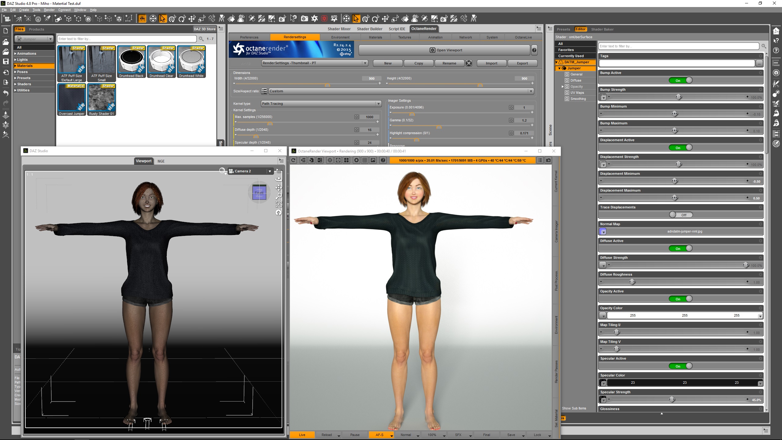 One other thing I noticed, if you look at the 2nd image (MaterialIssue2), Look at the expanded view of the DATM_Jumper (The top used on the first image) and Arleya Dress (Used in the second image) surface (Right side of the image), there seems to be a separate 'Diffuse' node for DATM_Jumper whereas for the Arleya Dress, it is part of the General node. I think whichever dress the diffuse is a separate node in the original DAZ material, Octane gets it as a Mix Material with the Diffuse set to off white on the first material. In the diffuse node for the DATM_Jumper, there is only one entry and that is the Diffuse Color with texture set.