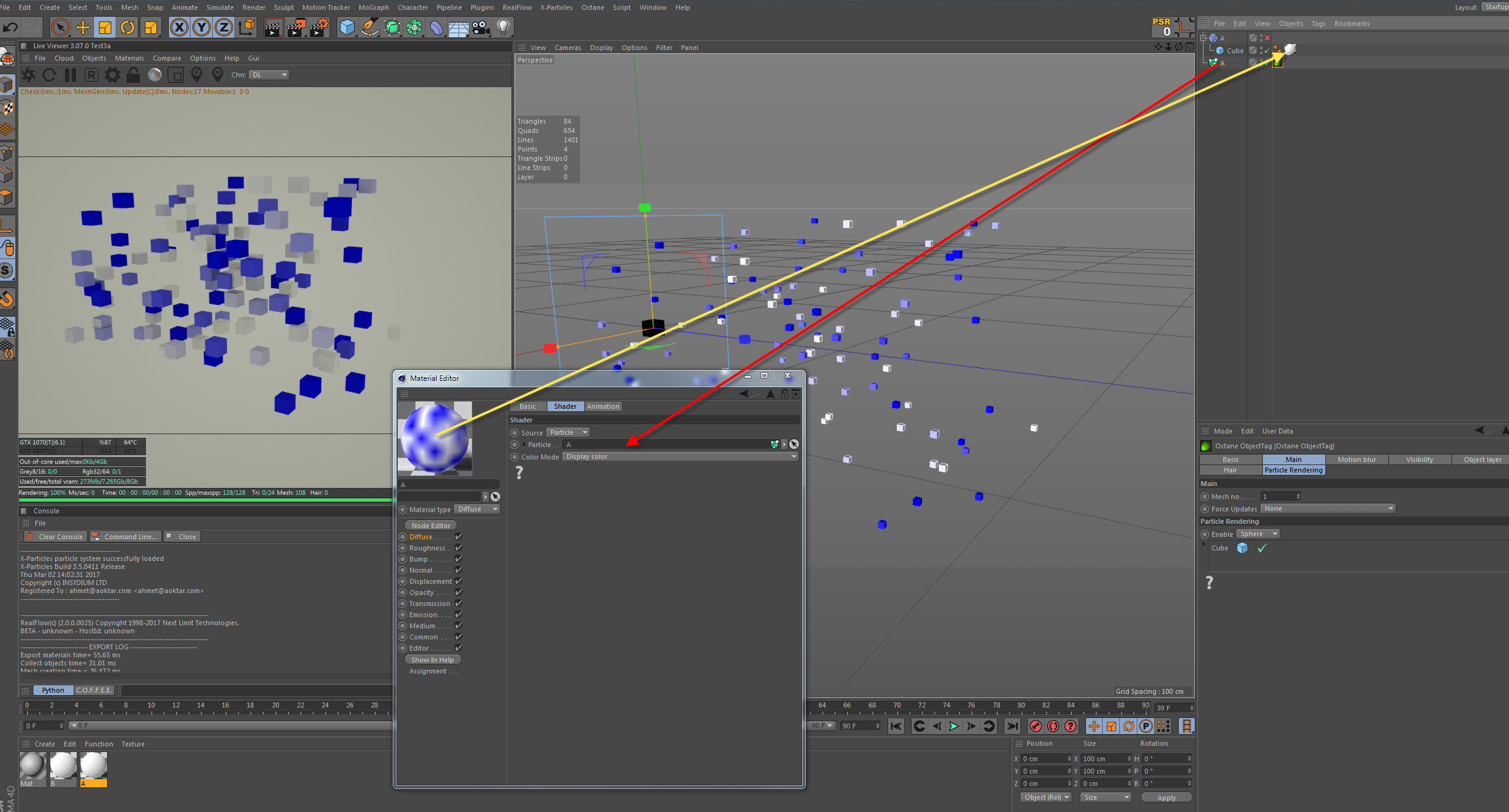 In both cases, xptrail and xpgenerator display correctly the color of the xptrails and xpgenerators for the emitter A. But for the emitter B, I assume they get the color from the first INDEX particle data. In this case this particle is red so they are all red.