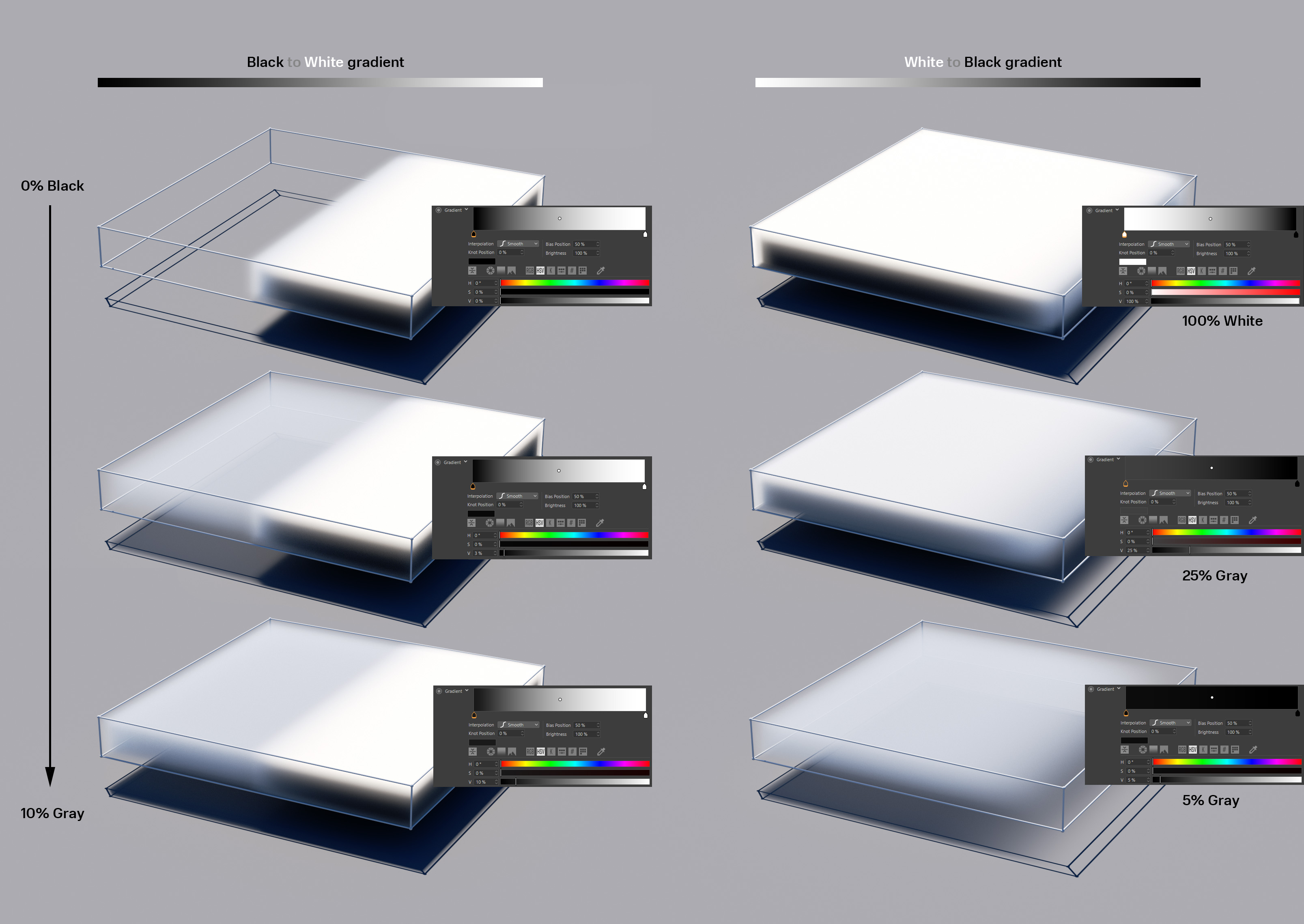 As you can see, (please take a look at attached image - first column) at any value of the first color of the gradient, we will not get a smooth fading of the density.