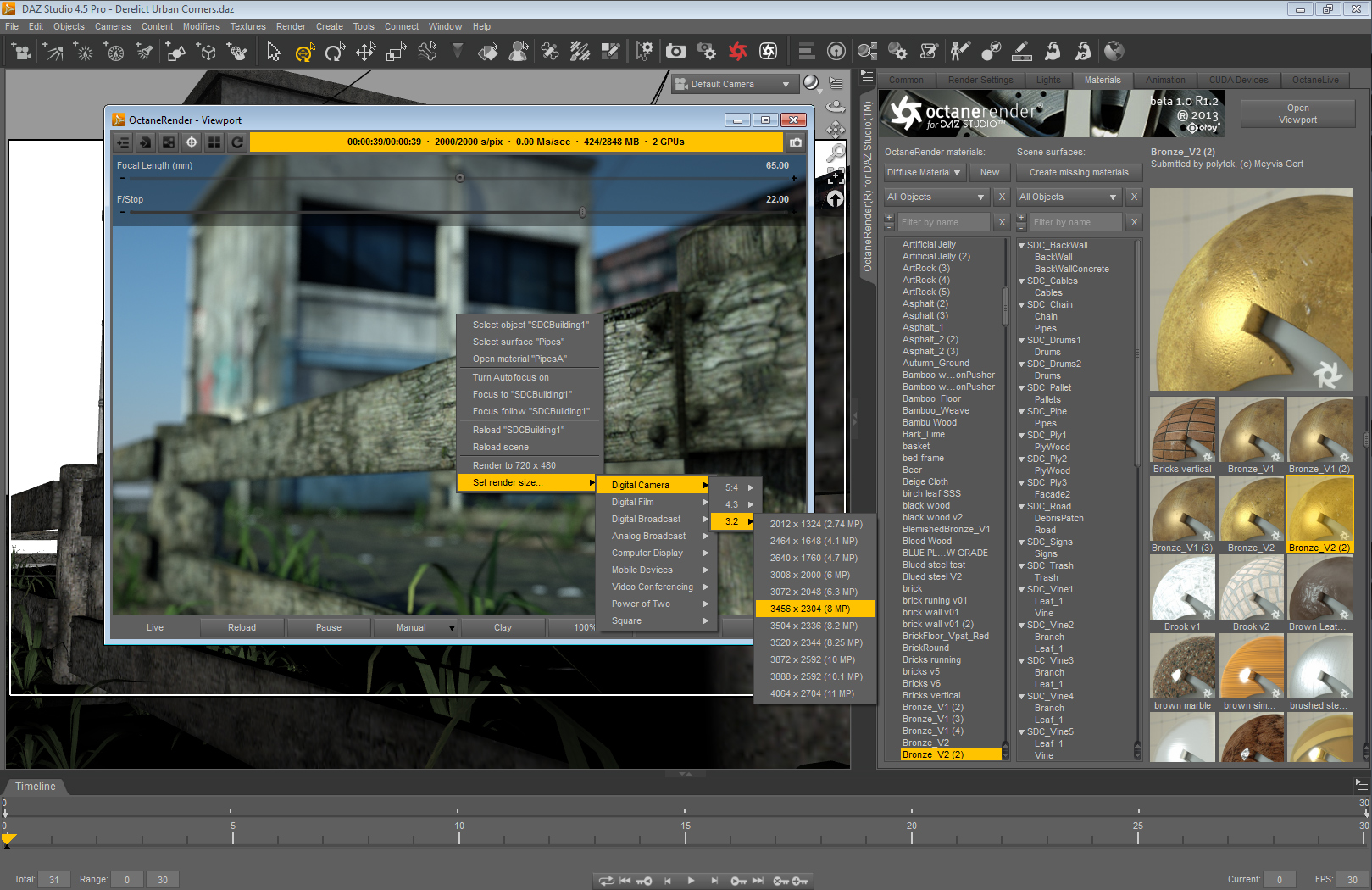 note: the f/stop parameter from the daz camera is translated into the octane aperture value and vice versa.