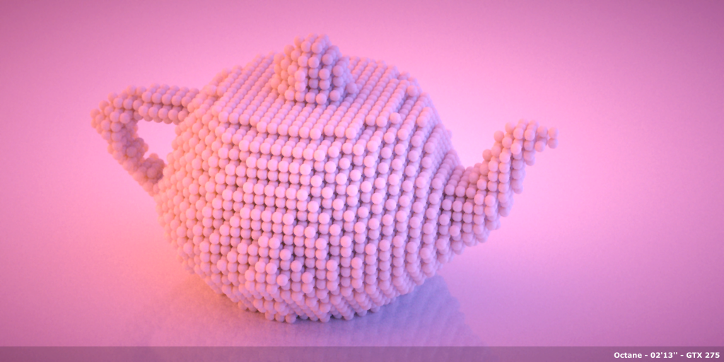 So here comes a ball-made teapot. I added some denoising and a bit of level and color correction in post.