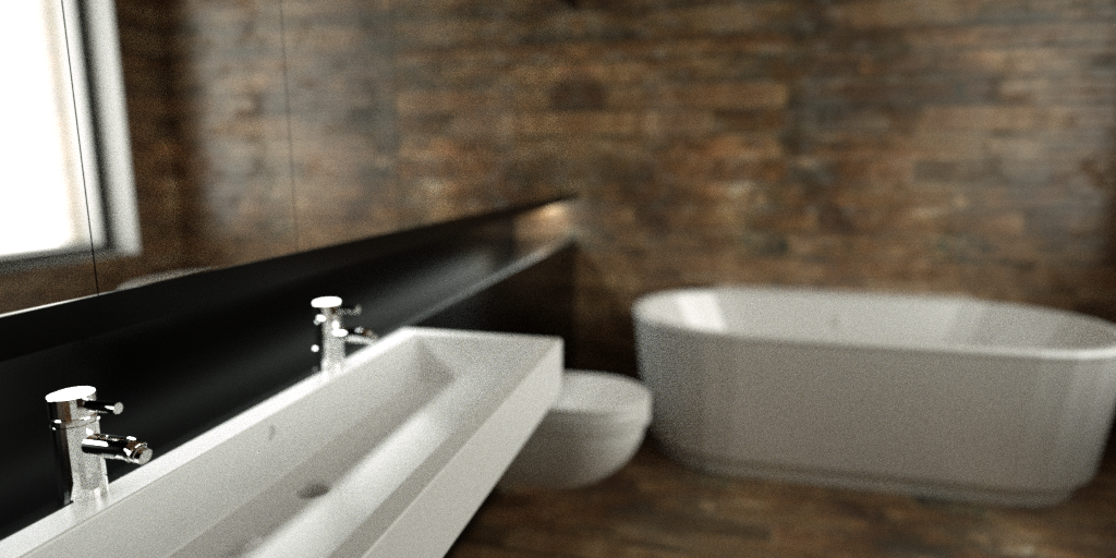 . Only faults are you need to turn smoothing on the bathtub and tables. You can let it render a bit longer for a cleaner result.