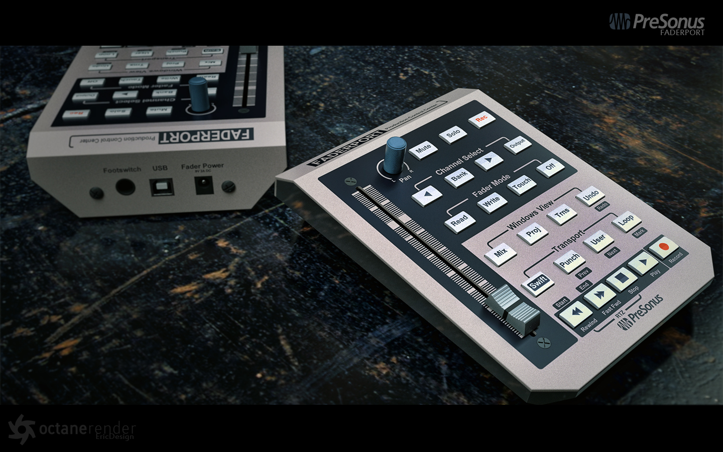 Ok This is my new project for octane render is Prosonus FaderPort is daw controller for music production.