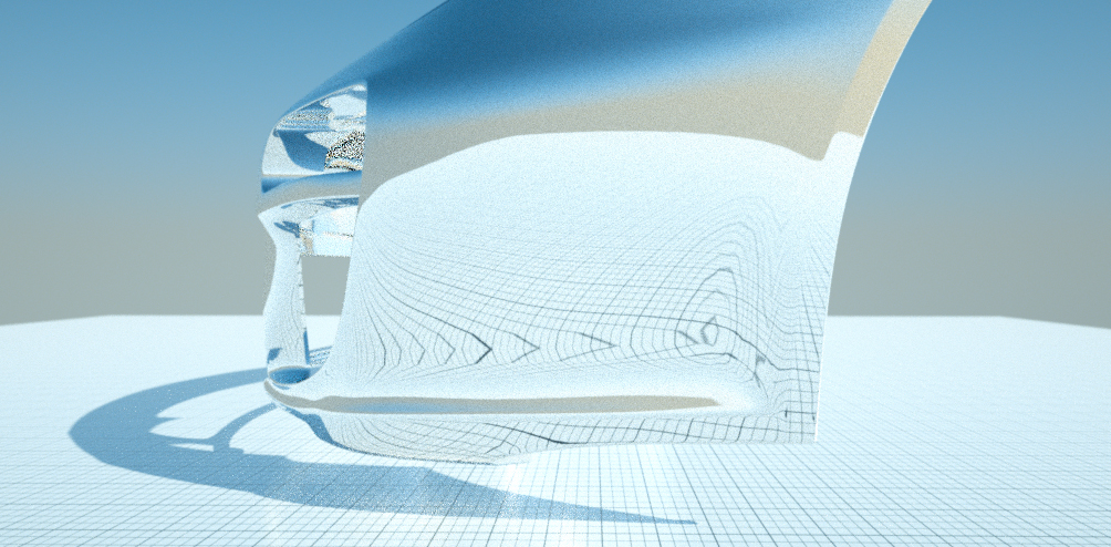 maybe a distorted u/v map on the bumper? apply a structured map (checker or whatsoever) to the bumper and see, if it looks right...