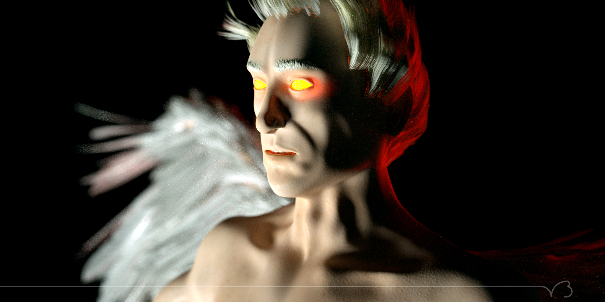real nice Kubo.... as always. I kinda like the sparse feathers. Sort of fits the character. Not sure about the glowing eyes. I think the classy nature of the rest of the work is really nice. The glowing eyes detract from that. Keep it up mate... always impressive in quantity and quality