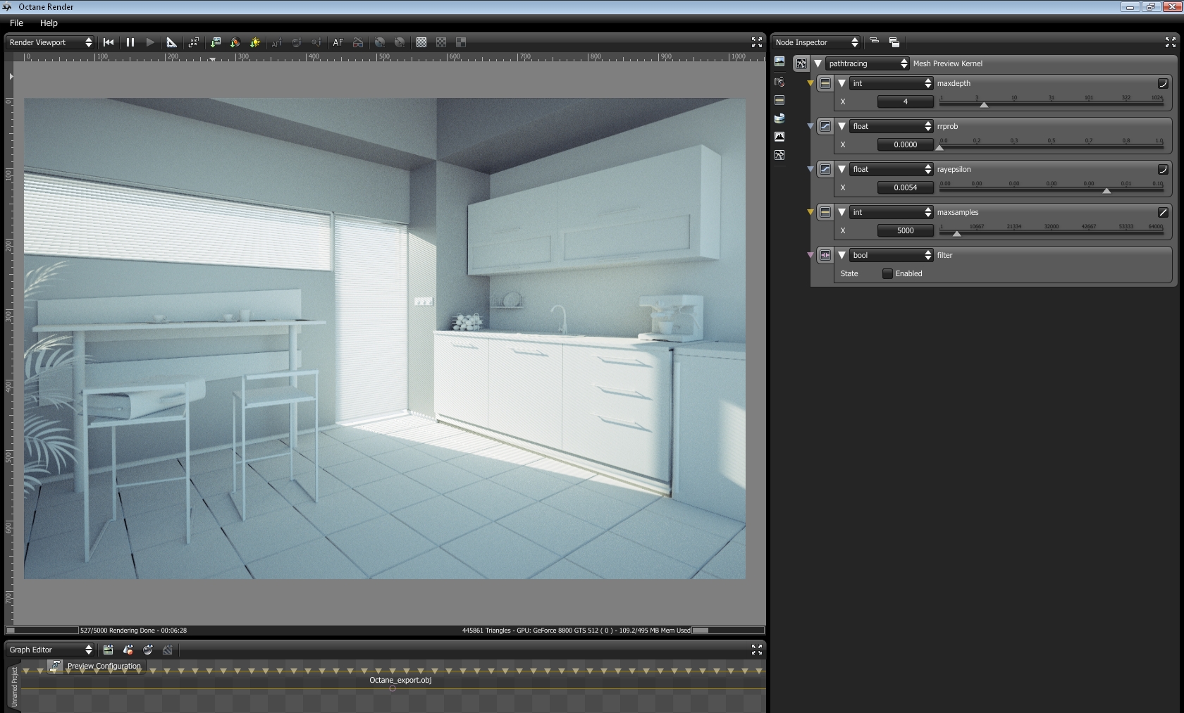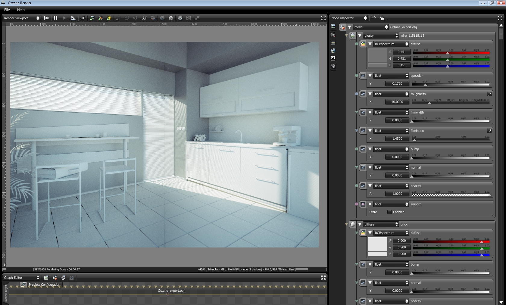 And what about memory usage?? It's double in multi GPU mode. I know that have to be loaded in both GPU-s.. but that way seems i have left less memory than with one GPU scenario. Also some weird line in the middle, separating both GPU calculations in multi GPU mode. Renders was done with pathtracing kernel, scene is saved in Octane beta 2.1 non multi GPU version. No material applied to any object ( uses the kilaD scipt to export ).