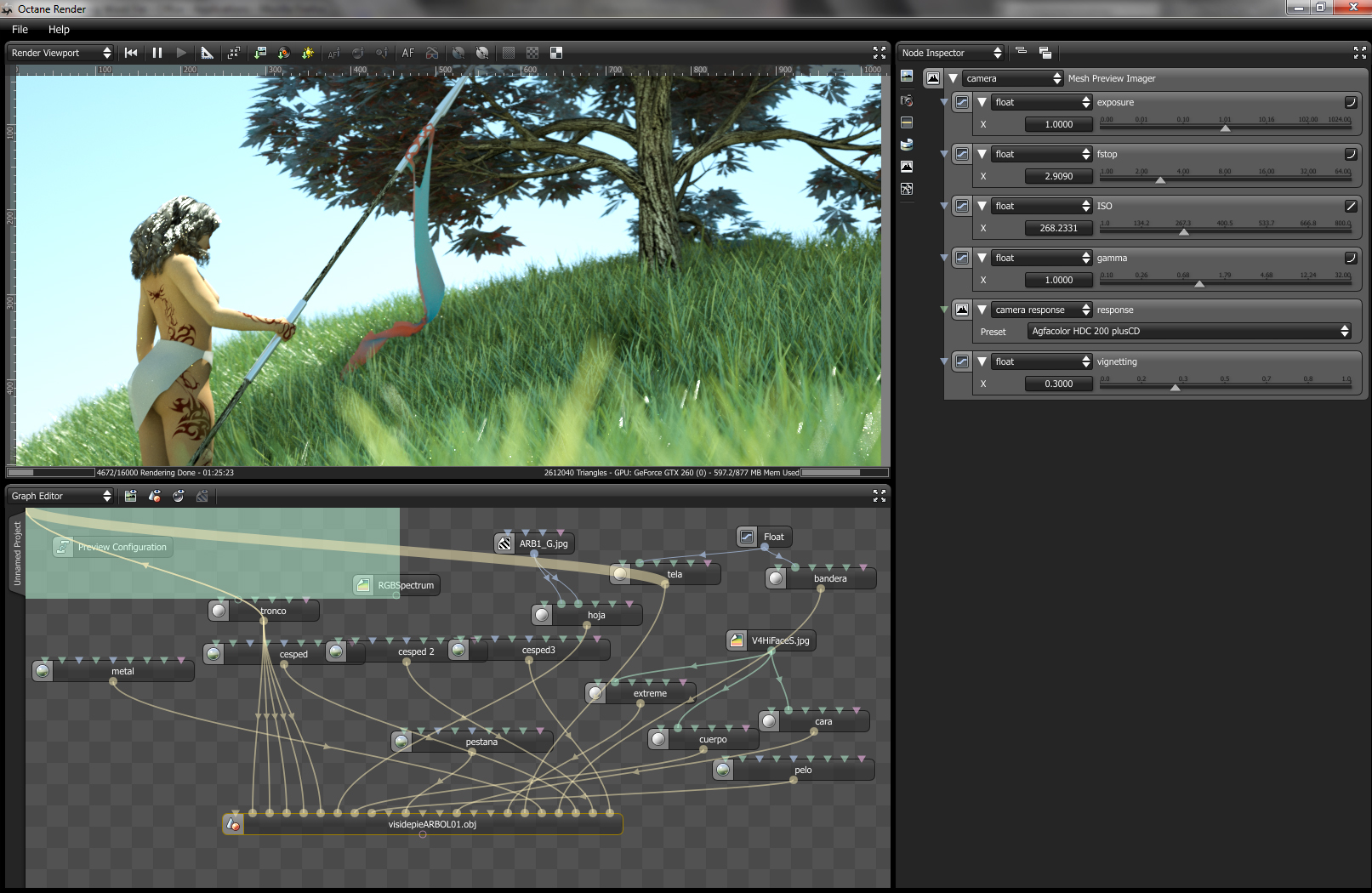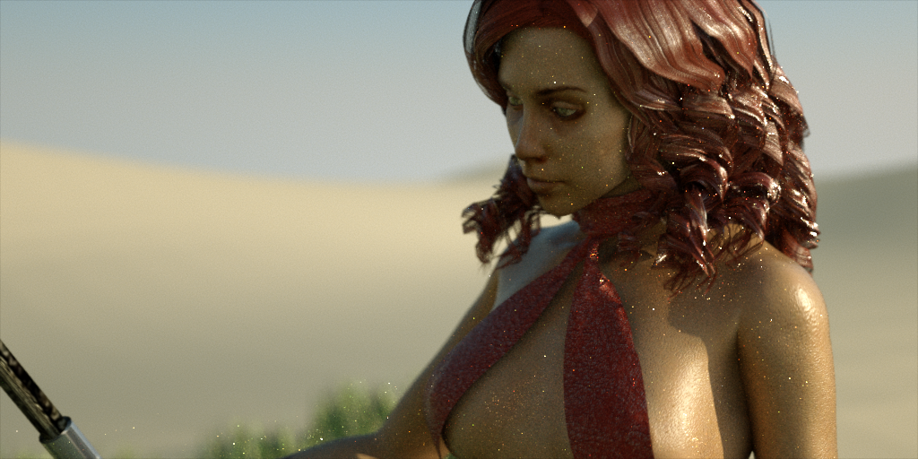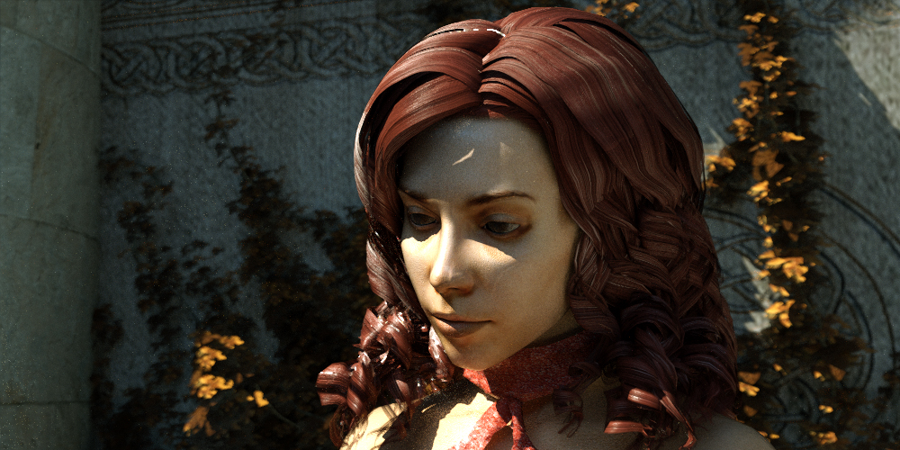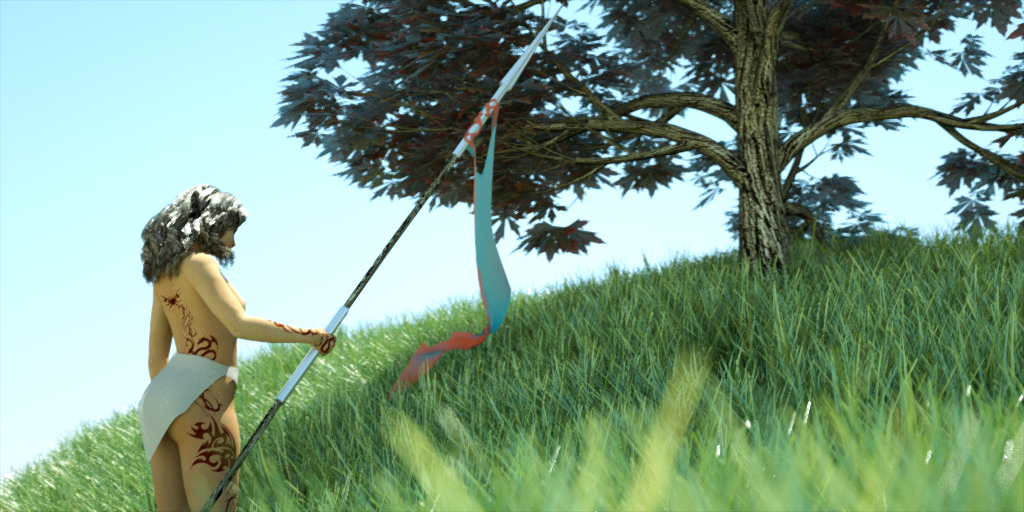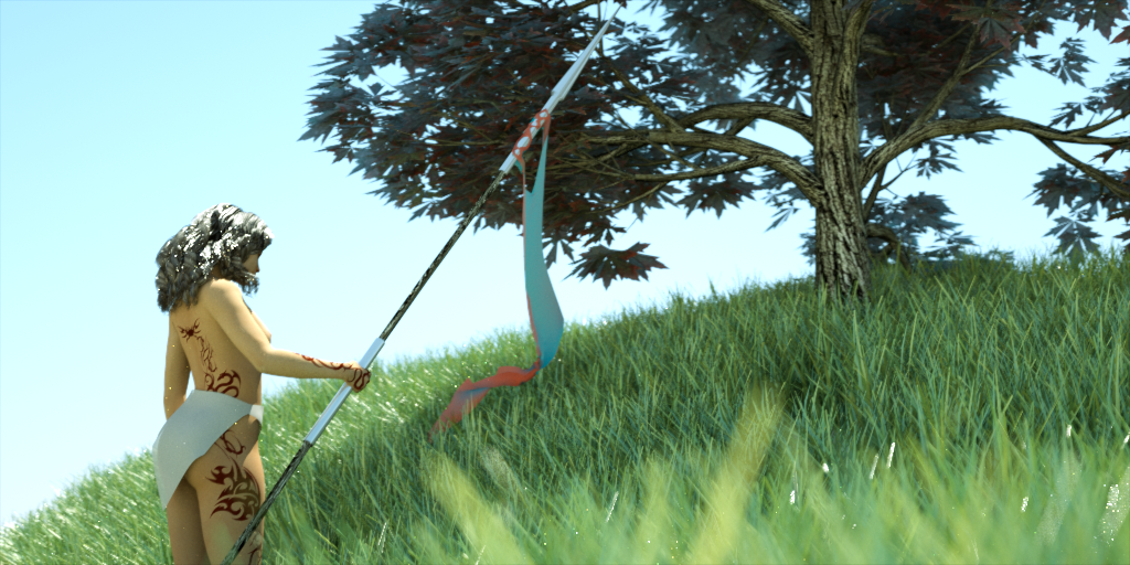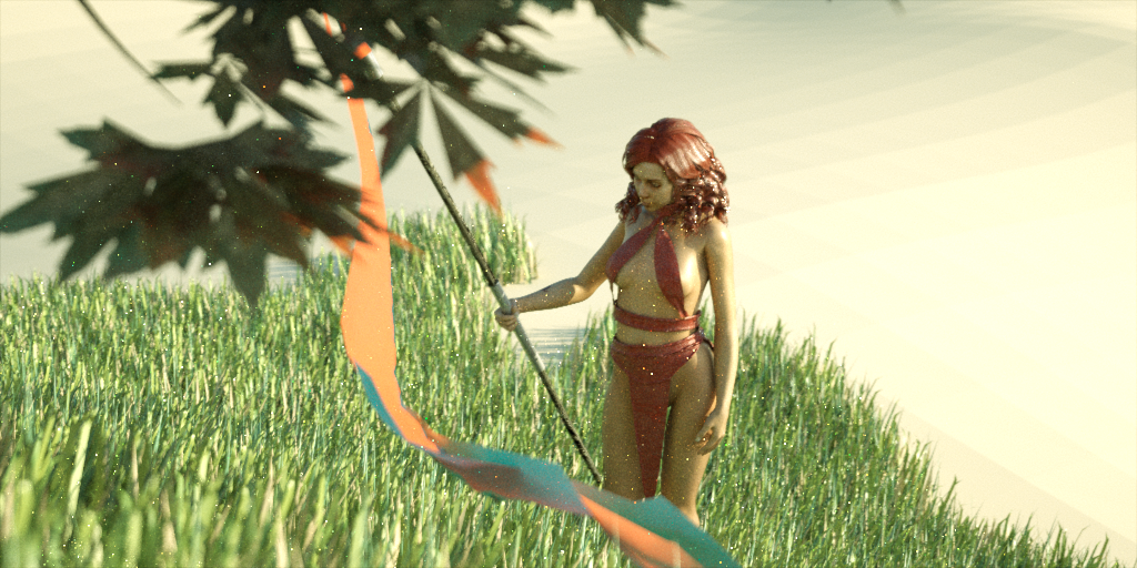 I wanted to test the SSS feature in the leaves, the woman and clothes, the results are not quite there, and I want to play a little more with the materials.