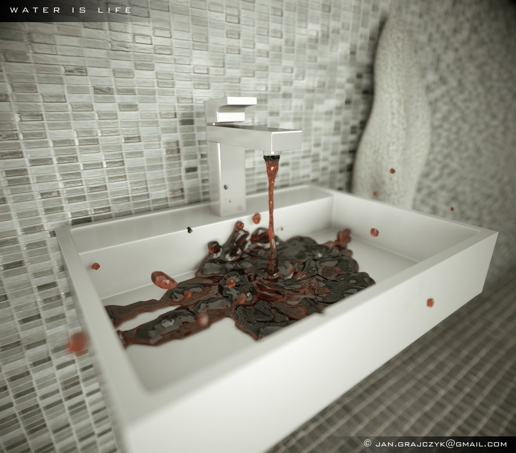 The effect of the "water of life" is great, just if I may, the tiles are a little too small, and gives the whole picture a cartoonish look making the sink look to big, besides that, AWESOME