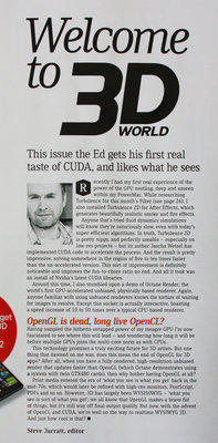 I just recieved the new issue of the 3D world mag and on the second page, editorial:
