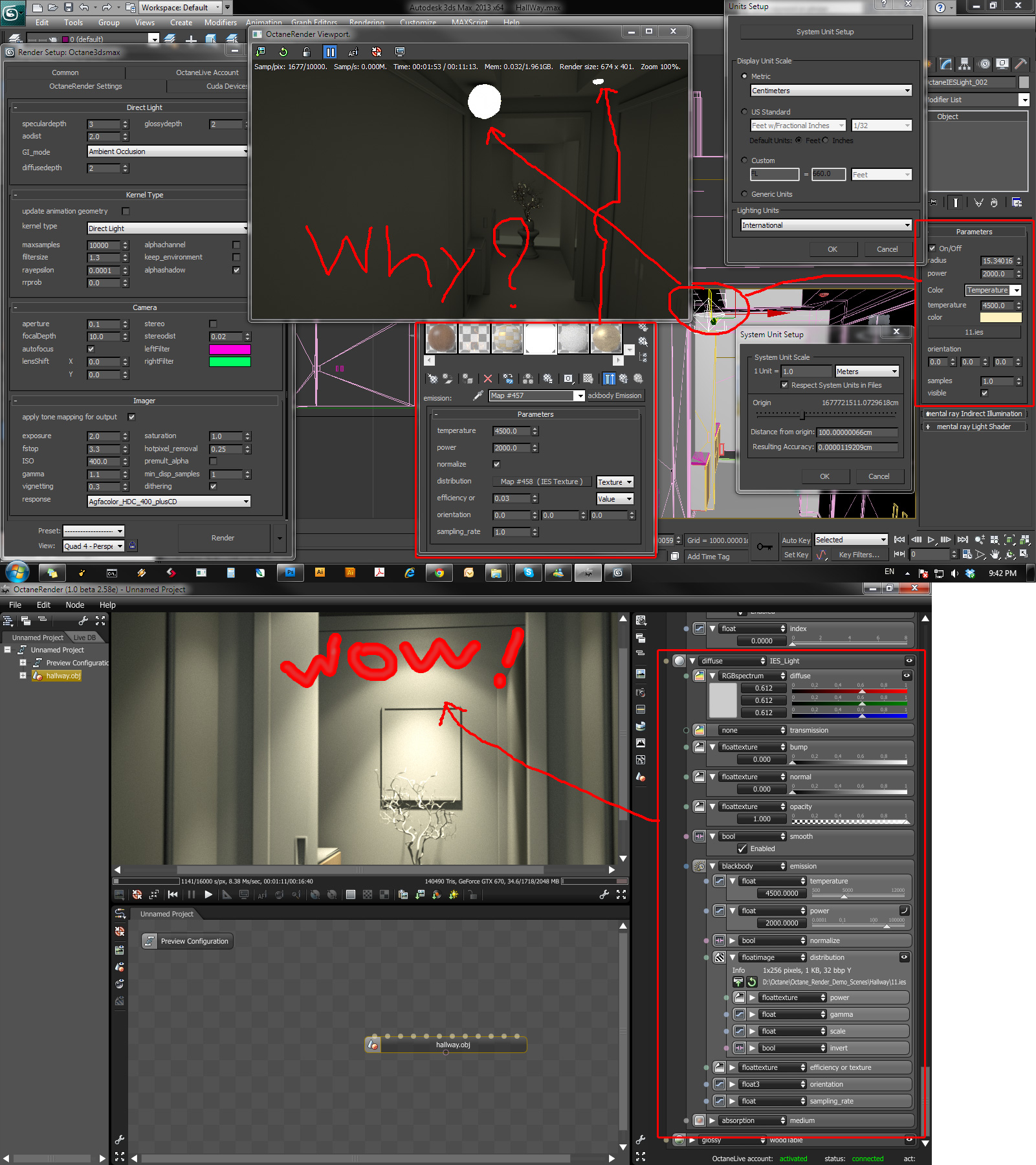 I have a very simple question... How can I make an octane IES light or a diffuse mat with a blackbody emission working properly in my 3DSMAX that run along with the Octane 1.0 beta 2.58e standalone edition ?