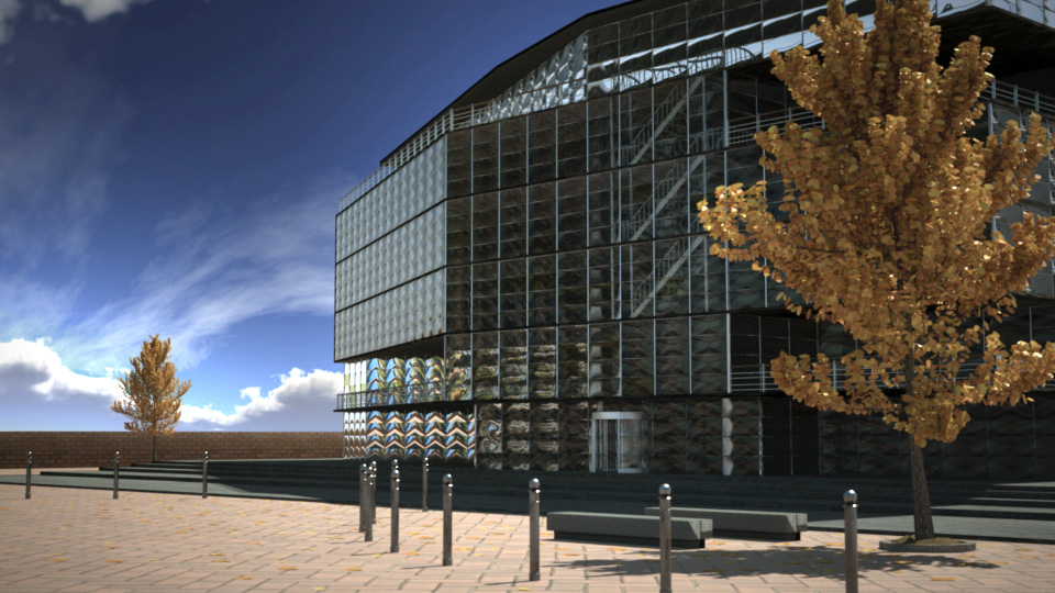 I have a particular question. If you see the render, every window is entirely reflecting the enviroiment, and it looks like a series of tv screens... this doesn't look good to me. I think the enviroiment should spread all over the building, and not be tiled on each window... what do you think about this? What am I doing wrong? I tried with severla glasses materials from the liveDB, and also to make a new one, but still the same problem.