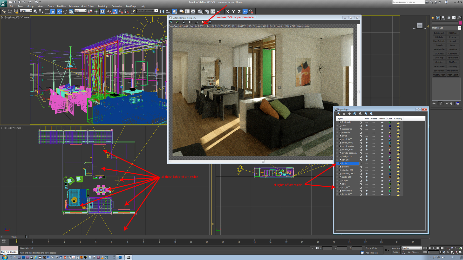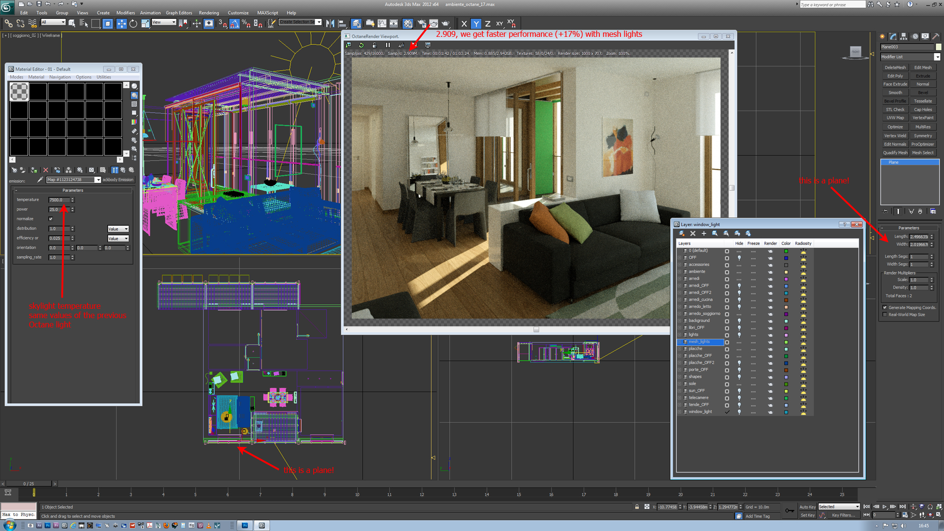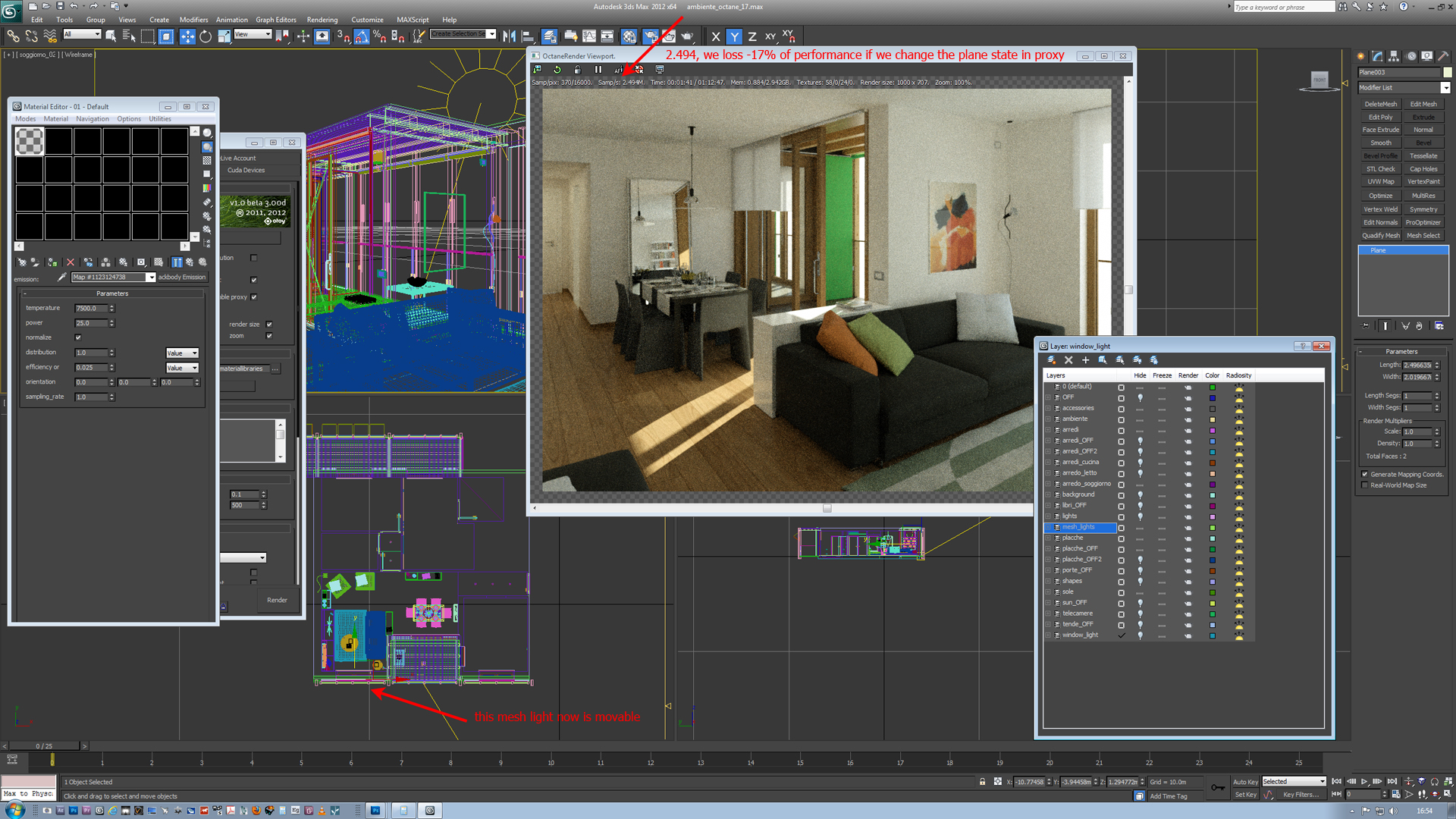 Now the only way to get decent performance from Octane is to use mesh lights, temporarily enable the proxy state to tweak the orientation and then switch it off.
