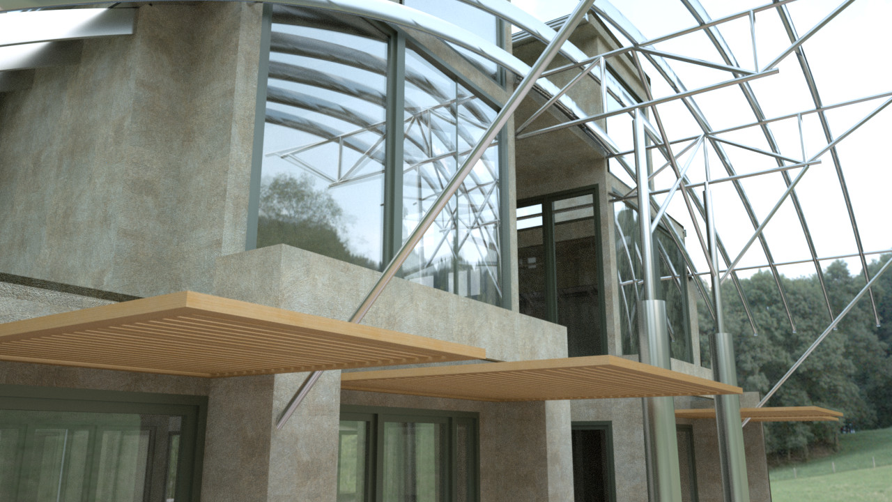 With falloff (notice the reduced reflection on the windows that are pointing more towards the camera) Without falloff (0.3 opacity regardless of viewing angle):