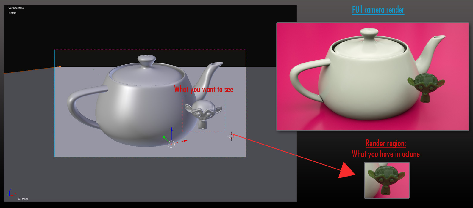 Is it possible to be able to do a region select to render like Blender does for internal rendering, and have it only export that region to Octane? I used to use LuxRender and it had this option in the Blender exporter. Would be very helpful if I only want to test one small area, or if my client wants to change/add something to a certain area. I can render just that small area and photoshop it back together. I just had this come up and my solution was to hide everything that wasnt contributing (glass ect) to the area that needed changed and then render. not a perfect solution though.