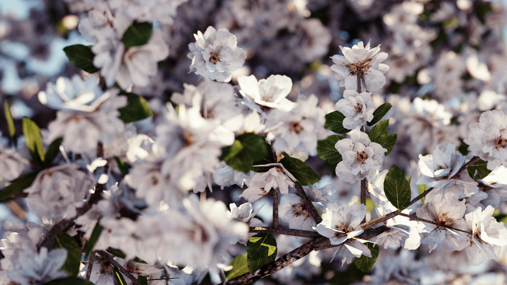 if you could just animate one flower plate deattaching and flying thru the tree with some nice tune,mmmmmm