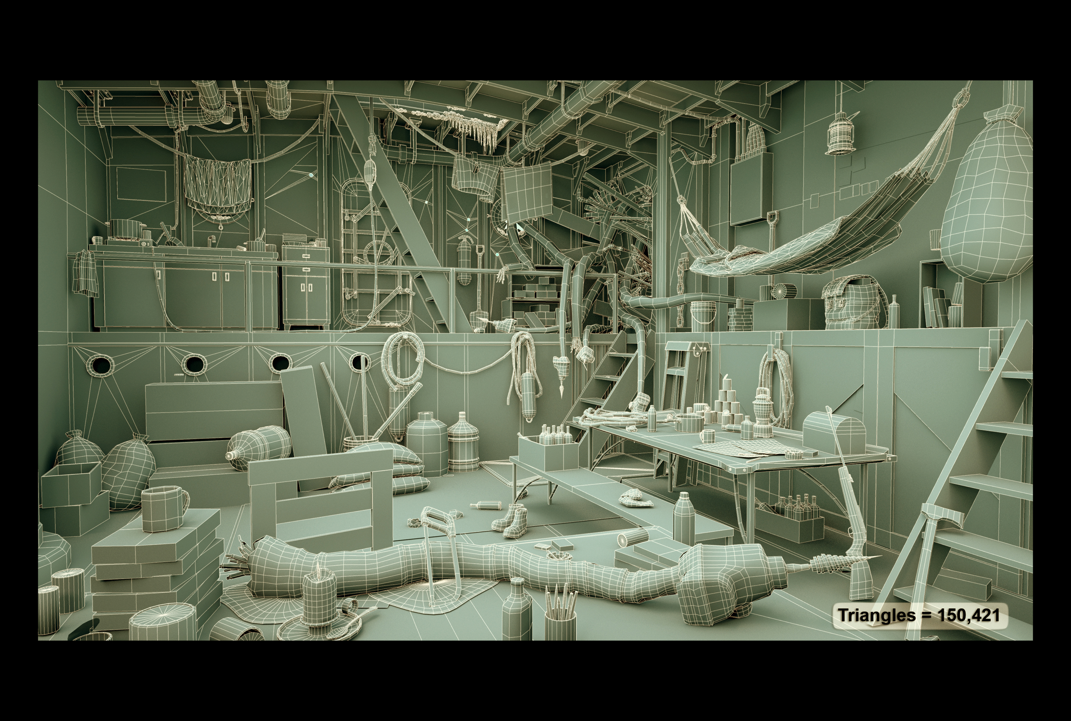 This entire scene is under 120k polygons, its meant to show a real-time poly count for games.