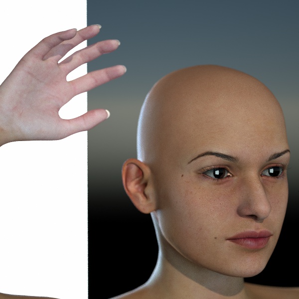 The issue without some transmission map is the unwanted scattering of the brows, changing their color from black to red/brown.