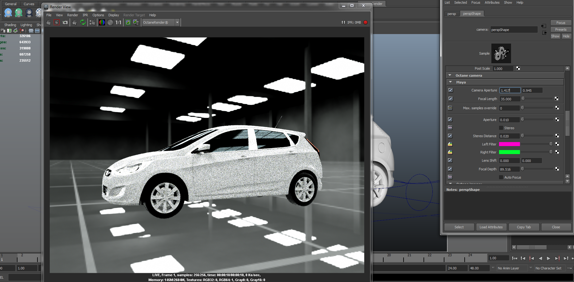 Octane Standalone version provides a lot cleaner interactive rendering without noise/grains,whereas trying to render scene from Maya(using Octane plugin) was a big pain. Basically, I provided equal sampling rates for each of the renderers - 256 sample rates with 1024/756 resolution. Octane standalone had no issues with grains,whereas Octane plugin for Maya 2013 shown incredible amount of noise. I wish I could just export my animation to Octane standalone and render it there, but since the standalone version doesn't support animation rendering, the only option I've got is to render it in Maya.Seems to me the Octane plugin for Maya 2013 needs to be improved somehow to avoid problems with grains. Did anyone have this problem before? Any advice?