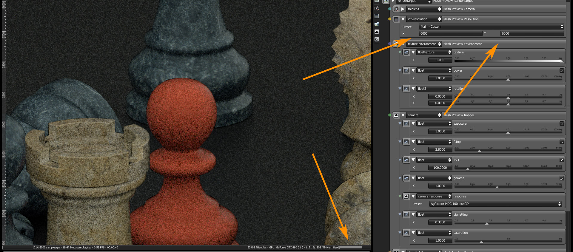 This image rendered at 6000x6000 pixels. As you see you need a lot of GPU memory, so i think people who want to render poster size images (our current hard limit is now 8192x8192) could definately use the new GTX260 cards with 2GB RAM for a decent scene at 8000x8000.