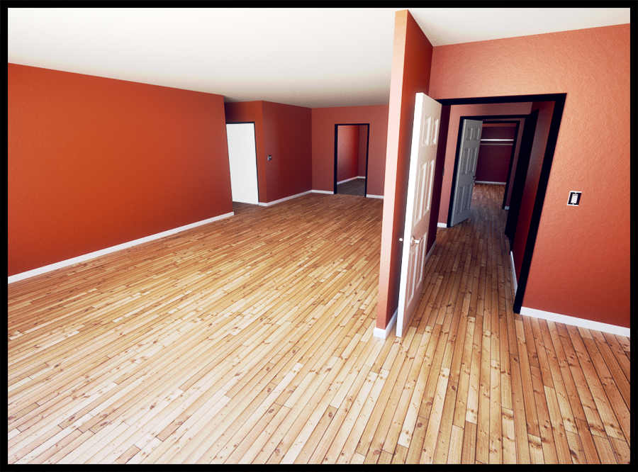 I am working on an interiour as sample work for a soon to be local start-up here in Thousand Oaks at the moment (using my apartment layout as reference). C&C welcome. I will most certainly have questions I hope this community can answer as I'm still very new to OctaneRender® I plan on doing several renders of different rooms. I believe I have some n-gons on my light switches and door frames. The normals are facing the correct direction in modo® -- I am using the Direct Lighting Kernel (Diffuse (4)) @ 3,000 s/px. At 1280x947 I am at 34 minutes with my 660Ti. When I first started this project (before I read about Octane) I was using the modo® default renderer, my render times in modo® were at three and a half hours or so at this resolution on my i7 3770K @ 4.6GHz -- the shaders were optimised for a visual balance and render times too! I giggled when I performed the same render in Octane! ... Giggled ... Image down-res'd a bit for the forum.