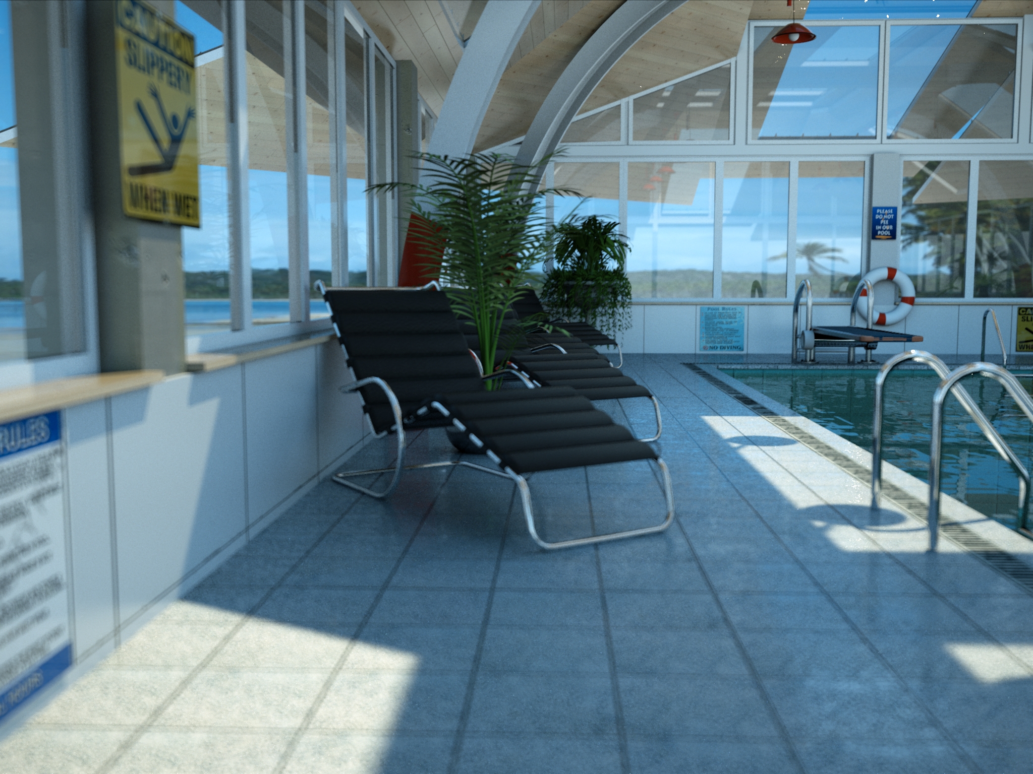 here a view images of a pool-house I have modelled in archicad ,fine tuned in cinema 4d r11.5 and rendered in octane .