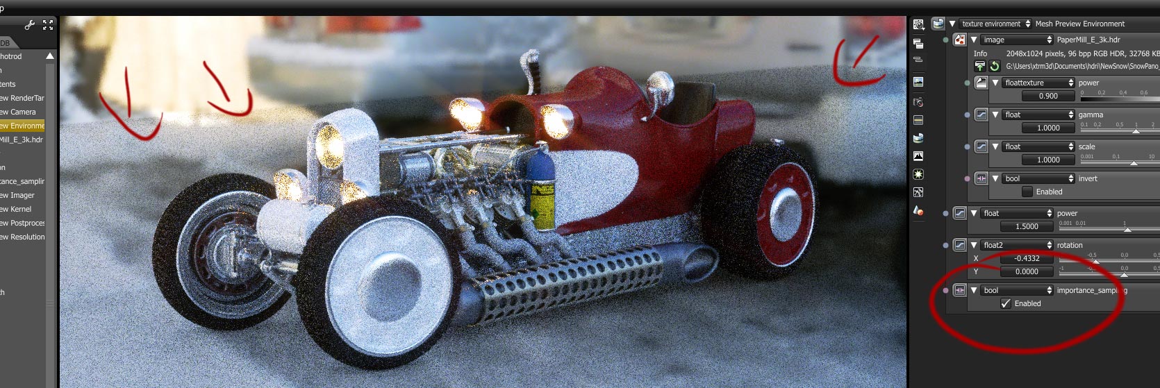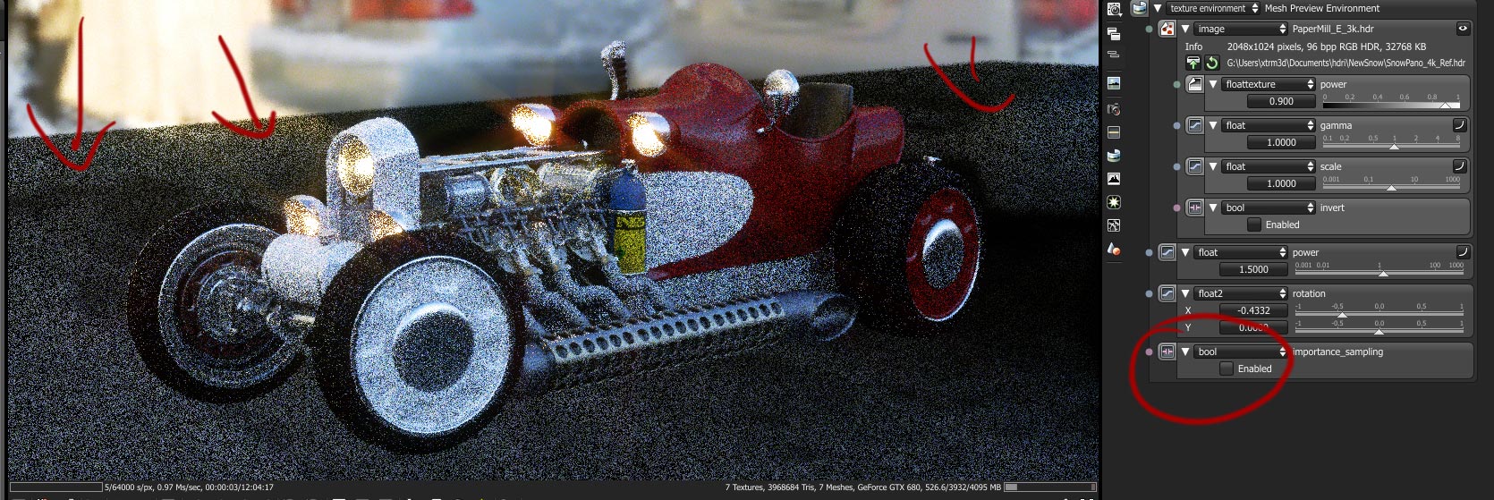 Importance sampling is enabled, yes I am using environment only And nope not working on this scene... Although bringing a ""light object "" work ..
