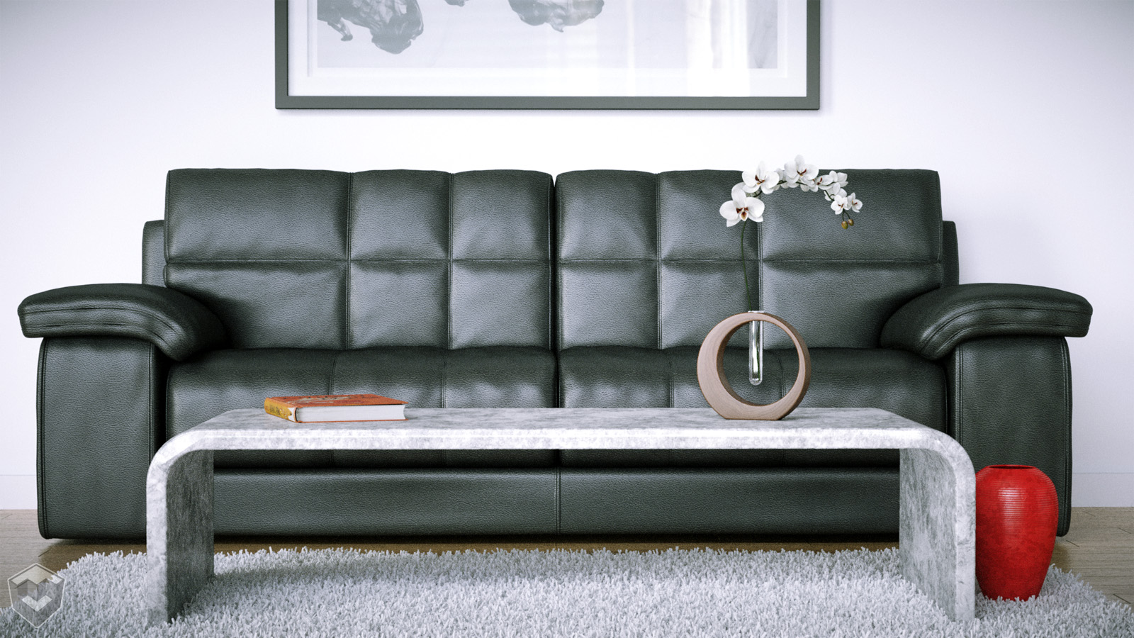 So here's a sofa with a table, a vase, a book and a carpet.